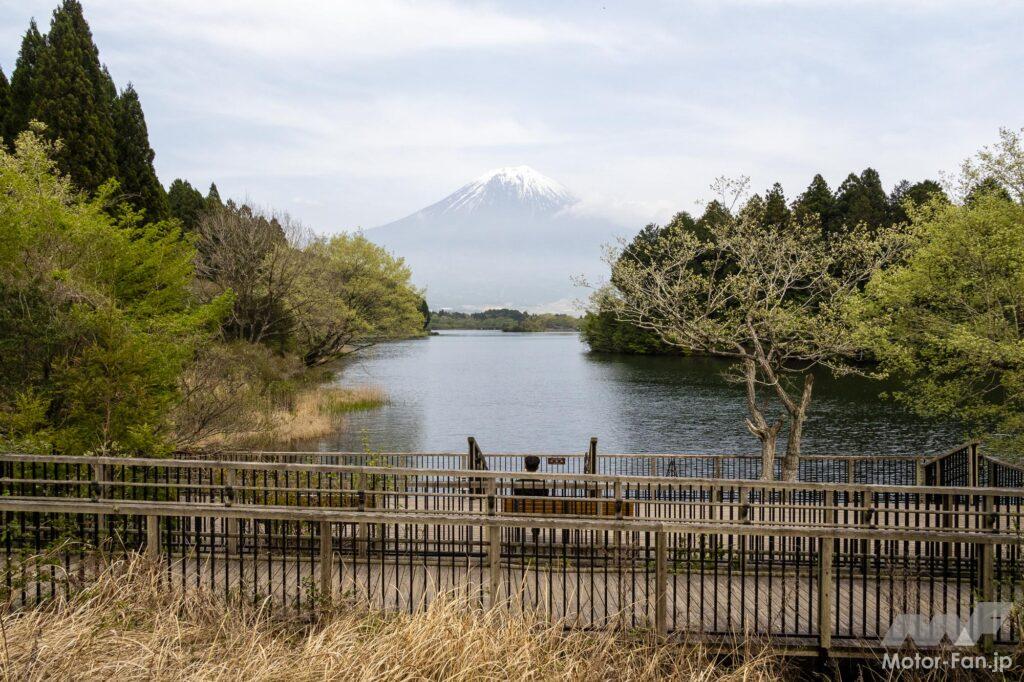 天候によって左右されるとは言え、四季折々に繰り広げられる、田貫湖越しに見る富士の美景は、写真愛好家にも親しまれる絶好ポイントとして人気がある。そんな撮影に相応しいスポットとして、「休暇村富士」の展望デッキ(座標ポイント)がおすすめ。雄大の富士山を背景に、湖を前に緑で囲まれる中に身を置く癒しのひと時は、ツーリングの疲れを吹き飛ばすほどに気分爽快。