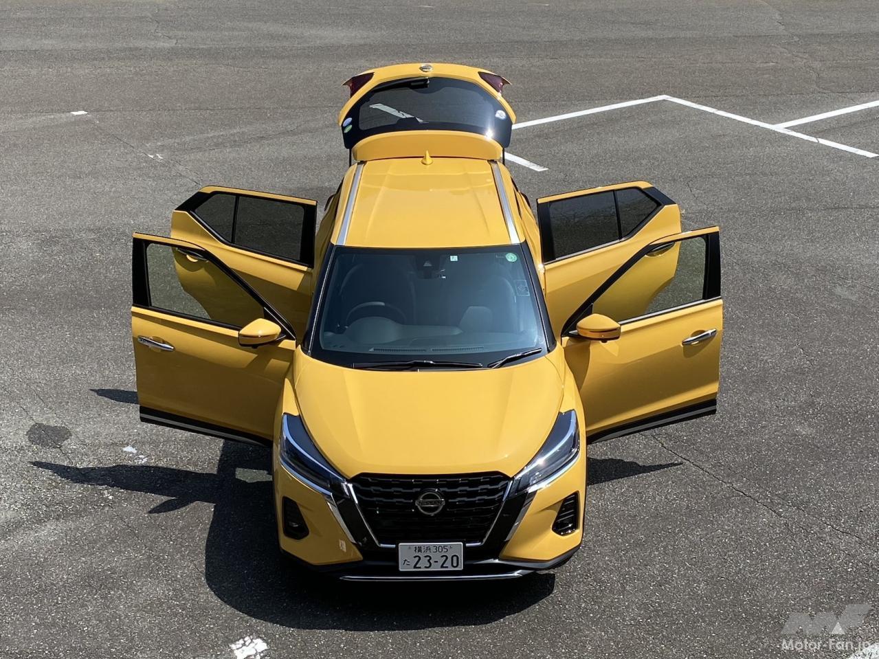 ドアハンドルは前後グリップタイプで、一般的な前ヒンジ後引き抜き型。ドアパネル下側にはガードが付いていて、ドアを開けたときに不幸にも縁石などにヒットしてもダメージは受けづらい。ドア全閉時の最外部は、フロントがグリップおよびアンダーガード、場合によってはその上のプレスラインというところで、開けるときには気をつけたほうがよさそう。リヤはフェンダーフレア部である。