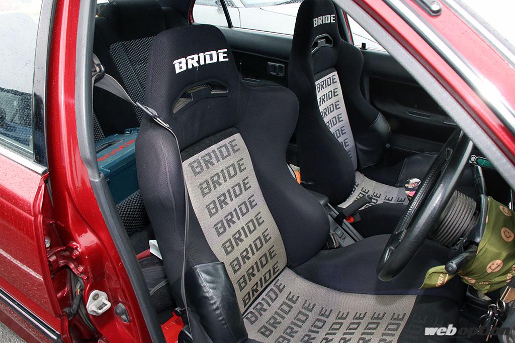 室内はフロントシートをブリッド製のリクライニングバケット(ブリックス/エルゴ)に変更。