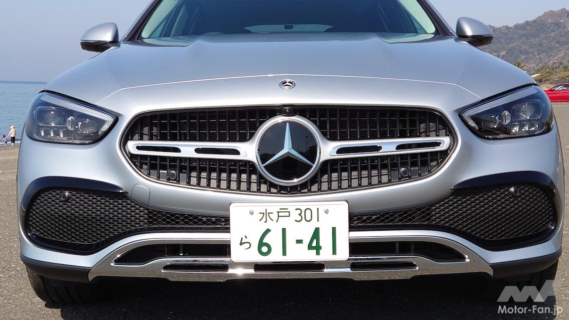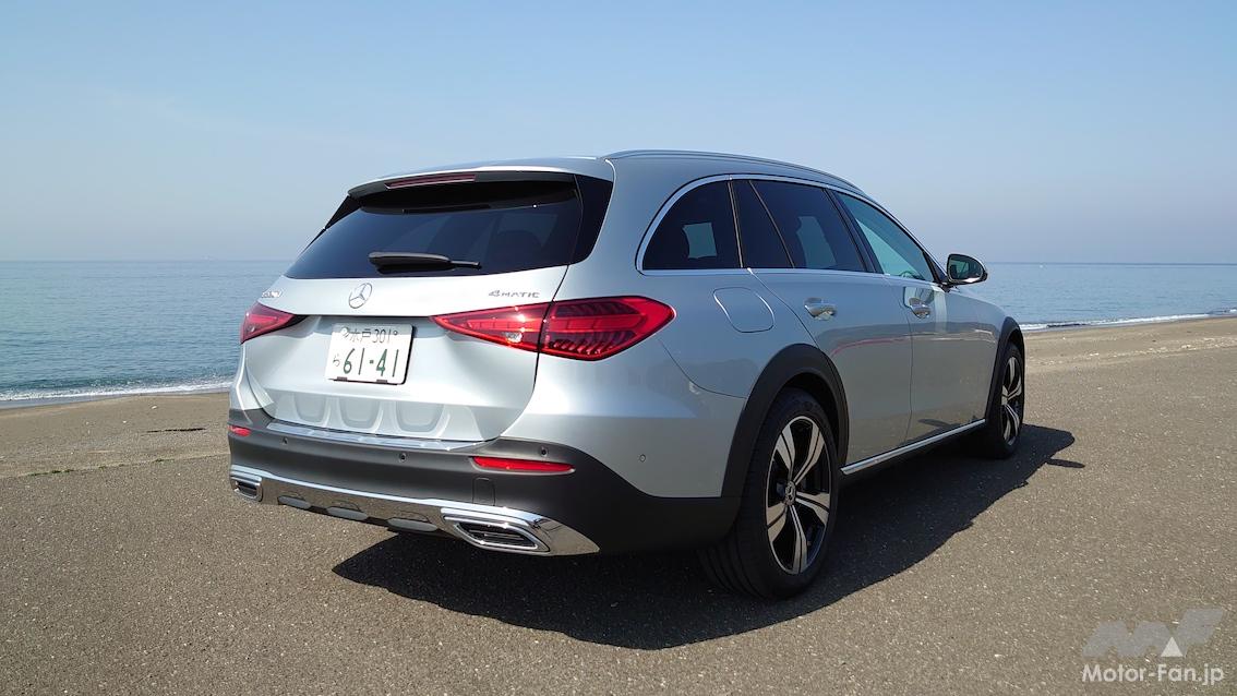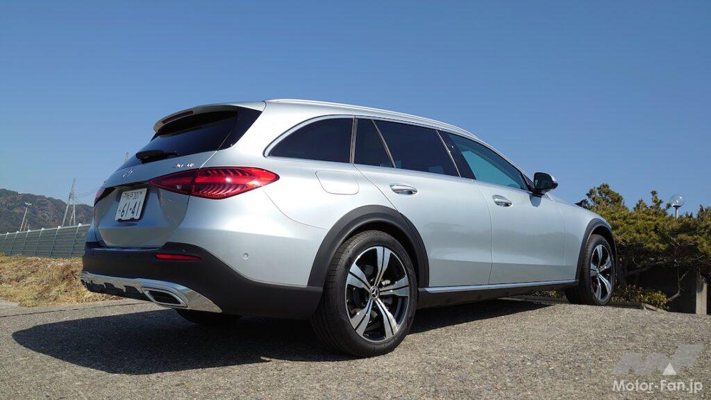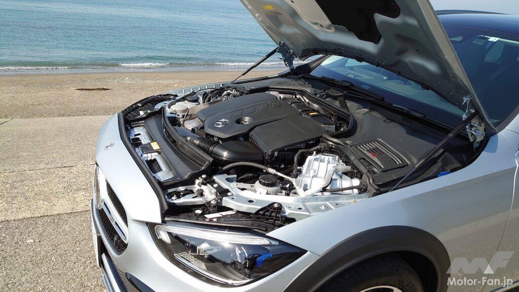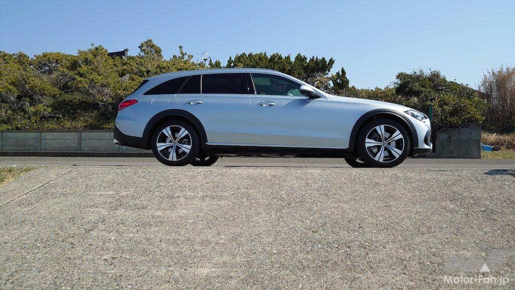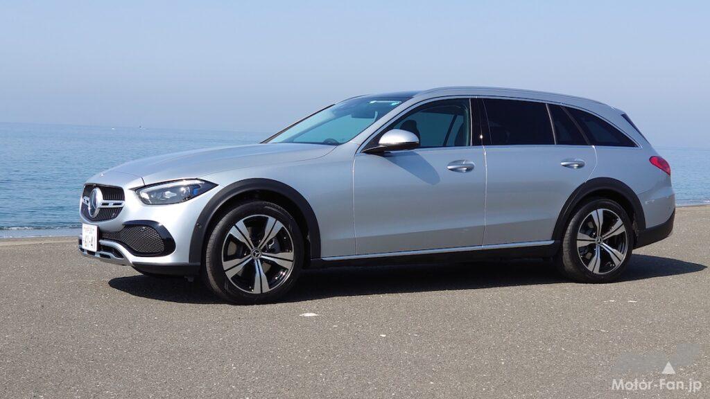 メルセデス・ベンツC220d 4MATIC All-Terrain 全長×全幅×全高:4760mm×1840mm×1495mm ホイールベース:2865mm 車重:1870kg サスペンション:Fダブルウィッシュボーン式式 Rマルチリンク式 エンジン形式:直列4気筒DOHCディーゼルターボ エンジン型式:OM654M 排気量:1992cc ボア×ストローク:82.0mm×94.3mm 圧縮比:15.5 最高出力:200ps(147kW)/3600rpm 最大トルク:440Nm/1800-2800rpm 過給機:ターボチャージャー 燃料供給:コモンレール式DI 使用燃料:軽油 燃料タンク容量:66ℓ 電動機 型式:EM0023 交流同期モーター 定格出力:10kW 最高出力:15kW 最大トルク:208Nm トランスミッション:9速AT 駆動方式:4WD WLTCモード燃費:17.9km/ℓ 市街地モード 13.8km/ℓ 郊外モード 17.9km/ℓ 高速道路モード 20.5km/ℓ 車両価格:796万円 試乗車はレーザーエクスクルーシブパッケージ 46万9000円付 メタリックペイント(10万2000円) 合計853万1000円