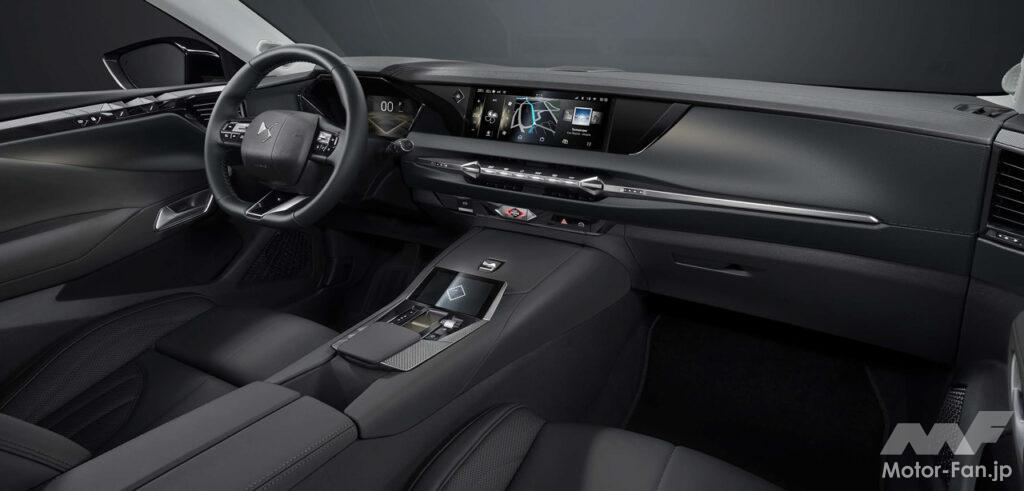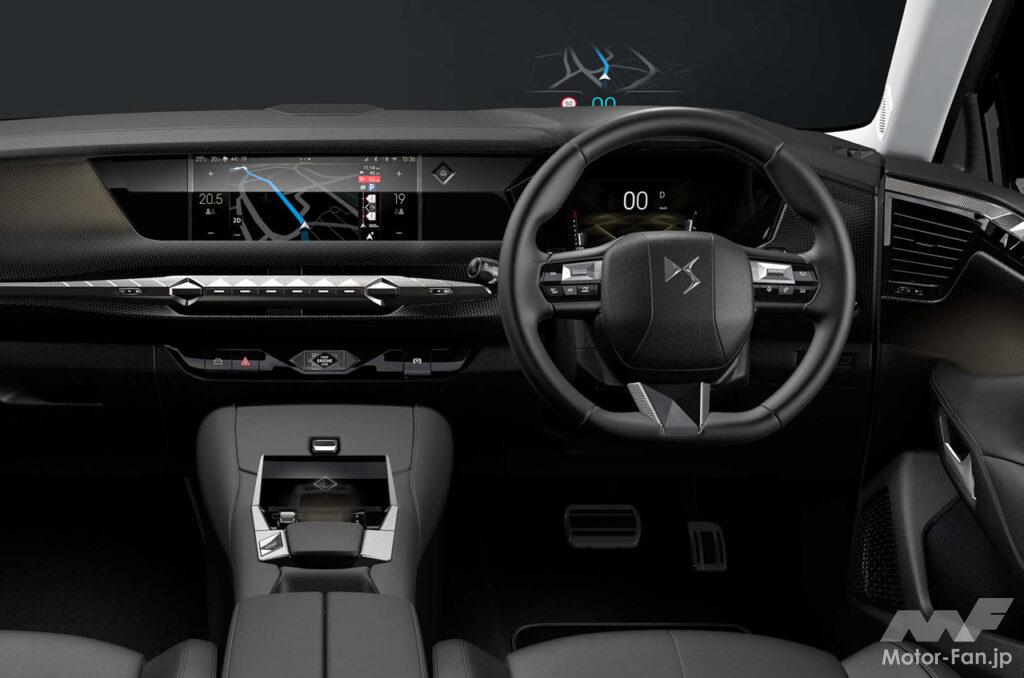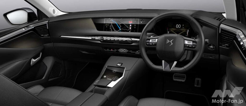 際立つエクステリアに加えて、インテリアもクラスを超えたエレガントでピュアな室内空間を表現。ダッシュボードは継ぎ目のないシームレスな造形で、中央部からは従来の大きなエアコン吹き出し口を廃し、新たなベンチレーションシステム“DSエア”を採用。スマートフォンと同様に直感的な操作が可能な10インチタッチスクリーン、ボイスコントロール機能を備えたナビゲーション“DS IRIS SYSTEM”、フロントガラス越しの約4m先に各種インフォメーションを投影するヘッドアップディスプレイなど、DS初となる新たな先進装備を数多く搭載している点も特色だ。