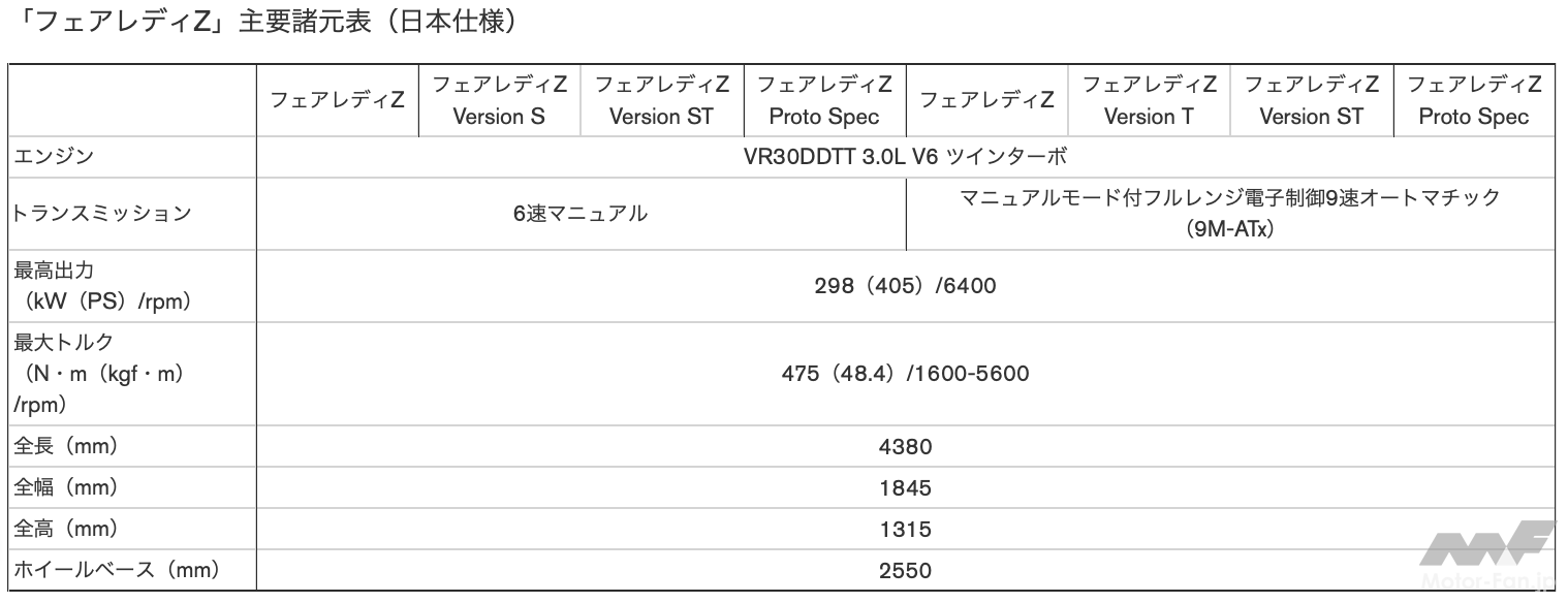 エンジンは、一時期日産の高性能車に引っ張りだこだったVQ37VHRから、スカイライン400Rにも搭載されるVR30DDTTに変更された。同じV6ではあるが、3.7L NAから、3.0Lダウンサイジングターボへと換装された訳だ。パフォーマンスは、336ps、365Nmから、405ps、475Nmへと大幅に向上している。