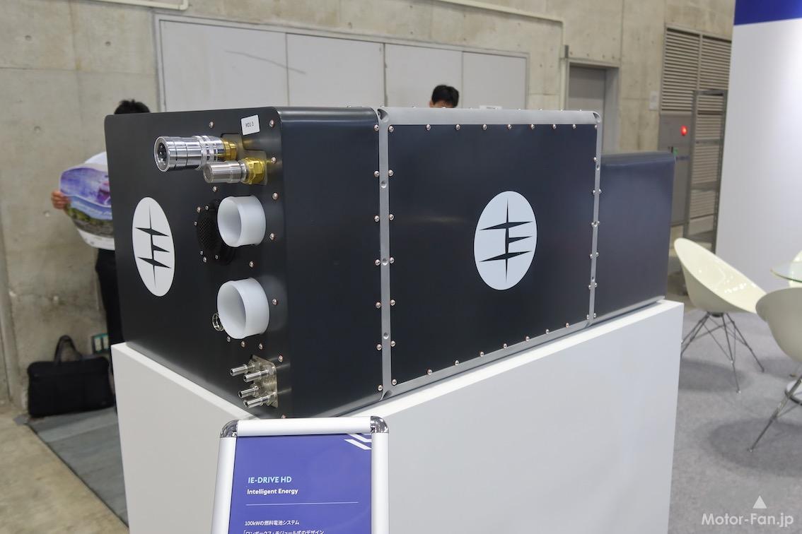 4月末に行なわれたウイーン・モーター・シンポジウムの講演プログラムを見渡して「水素関連(燃料電池、水素エンジン)が多いな」との印象を抱いていたので、そっちに意識が向かっていたのかもしれない。例年、会場の北の端にある英国パビリオンから見学するのをならわしとしているが、最初に目に飛び込んできたのがインテリジェント・エナジーの100kW燃料電池システムだった(バス、トラック、貨物取扱、海洋、鉄道、建設、定置型エネルギー向け。「ワンボックス」モジュール式デザイン)。