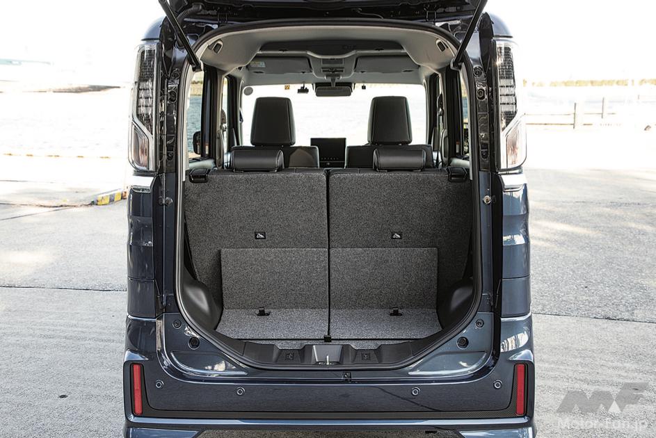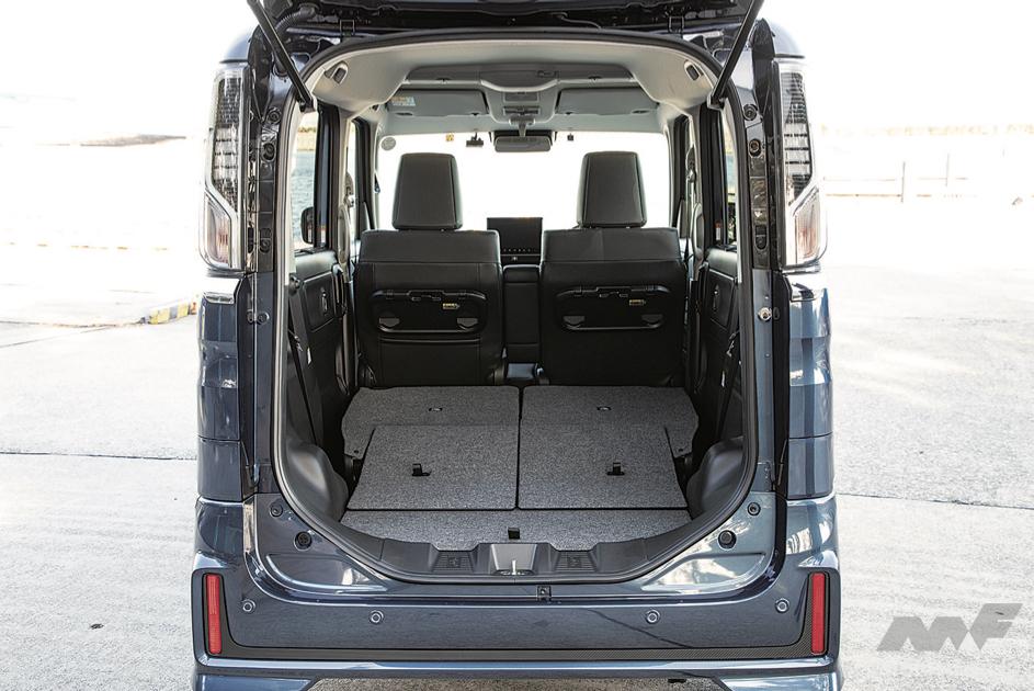 最大幅が1030mmに達する広大な開口部を備えるばかりか、下端には自転車の積み下ろしをサポートするガイドも装備。便利な後席シートの分割可倒機構と左右独立スライド機構は全車に採用されている。