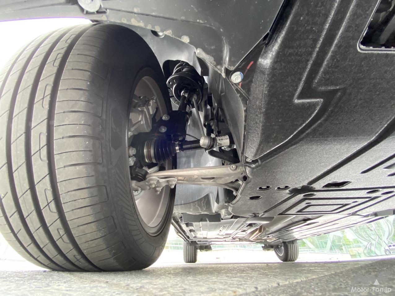 タイヤサイズは205/55R19という、特殊なサイズ。大径だがタイヤ幅は狭い。これはコンフォート性能と転がり抵抗のため。