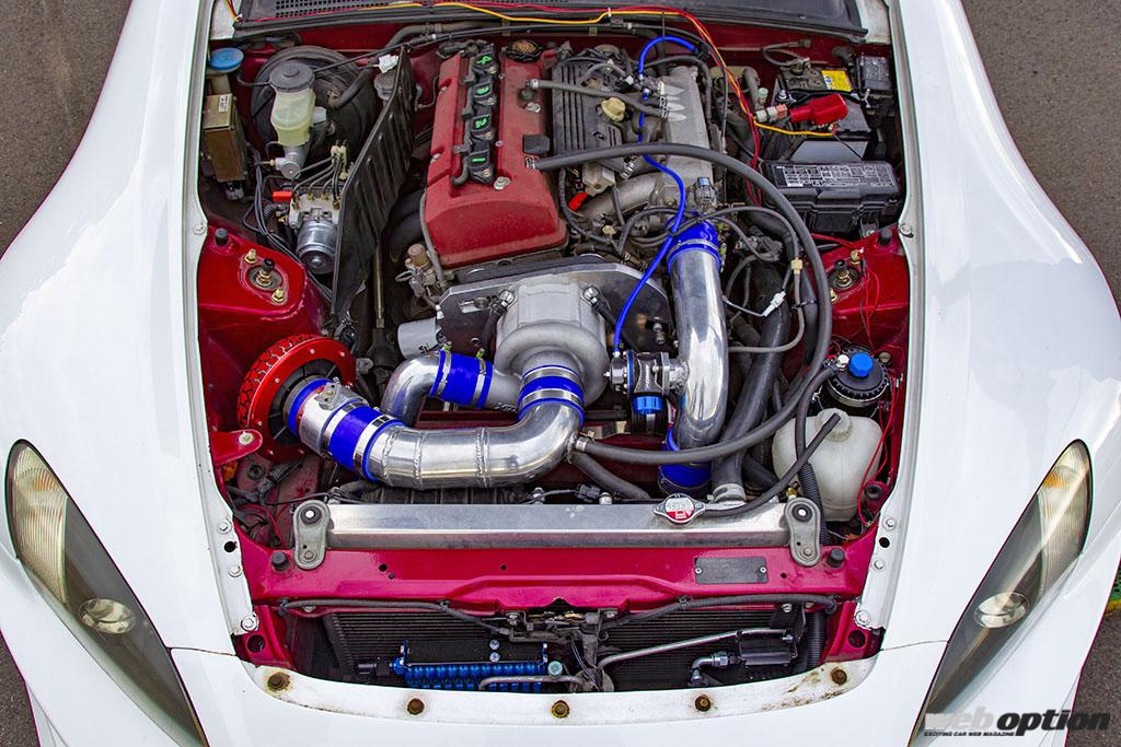 「このS2000は、当初HKSのGTスーパーチャージャーキット(現在は廃盤)を装着する手軽なプランを提案していたのですが、オーナーさんがウチが製作したワンオフのスーパーチャージャー仕様を見て、『手間や費用がかかっても良いから、ワンオフでカッコ良く、そして速い仕様を!』と熱望されたんです」とは、KBCの高瀬さん。