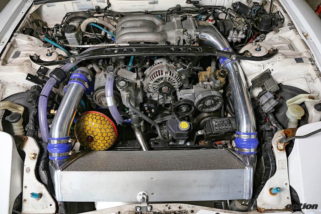 13B-REWエンジンは、ローターの重量合わせをはじめとしたバランス取りが行われている程度で、ポート形状等はノーマルをキープ。エンジンマネージメントは定番のパワーFCが担う。