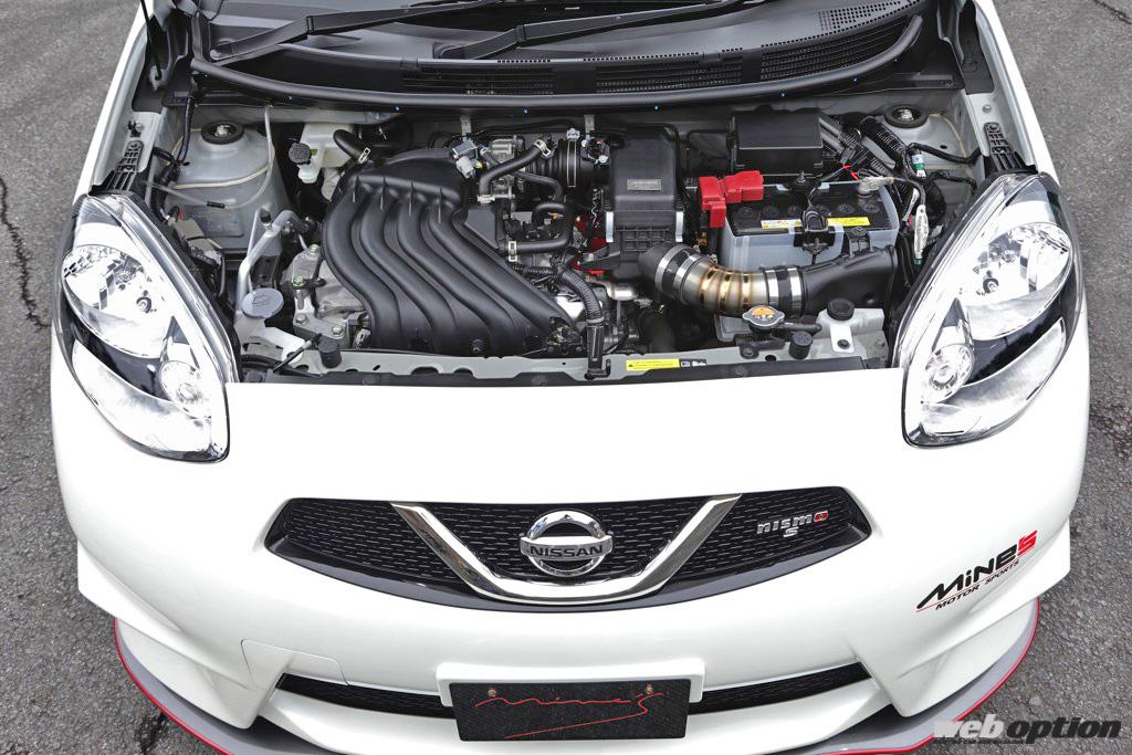 ここで紹介するのは、そんなマインズが手掛けたマーチニスモS。1.5LエンジンのHR15DEを搭載する5速MT仕様というパッケージのホットハッチだ。