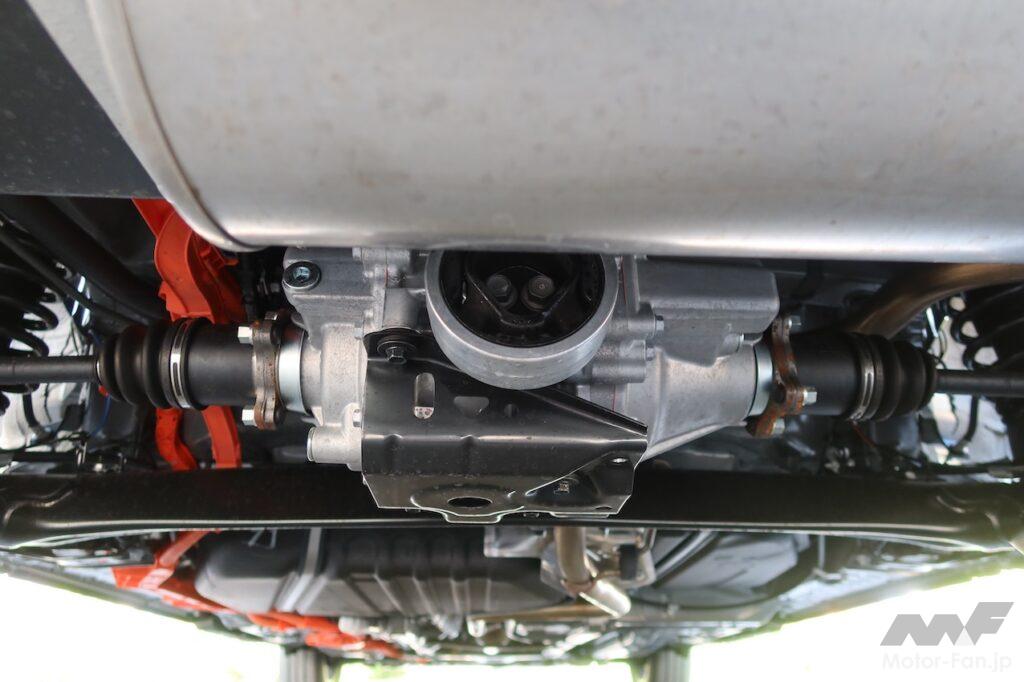 E-FOURもパッケージング上の工夫を施している。ヤリス・クロスではリヤモーターの上にインバーターを載せている。シエンタでそれをやると荷室を侵食してしまうので、リヤモーター用のインバーターは助手席の下に搭載している。乗員のためのスペース、荷物のためのスペースを犠牲にしないためだ。