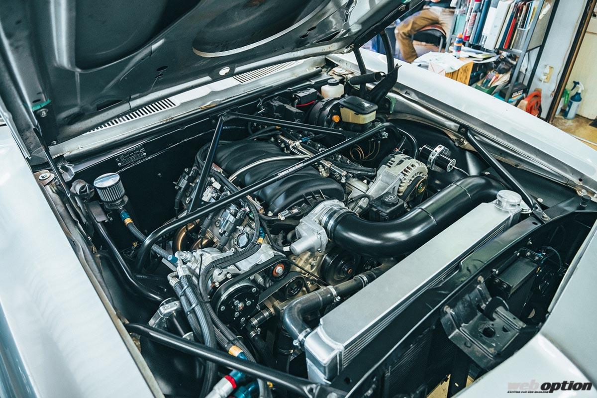 「実際、ドライサンプのLS7は今ではその生産自体が終わってしまっています。同じくドライサンプのLS9(6.2Lスーパーチャージャー/647hp)も終了しました。要はより刺激的でパワフルなLSはもう新品のクレートでは買えないということ。もちろんウェットサンプのLS3辺りがいちばんバランスもよくてお勧めできるのですが、ウェットだとオイルラインの加工もなく簡単に載せられてしまうし、何より刺激が足りなくてビルダーとしては面白くない(笑)。あとはやっぱり、LSスワップ自体が世の中ですっかり市民権を得てしまったことも、人と同じことをするのが嫌いな性分の自分としては、もはやそれがすっかり過去のものとして映ってしまうのです」。