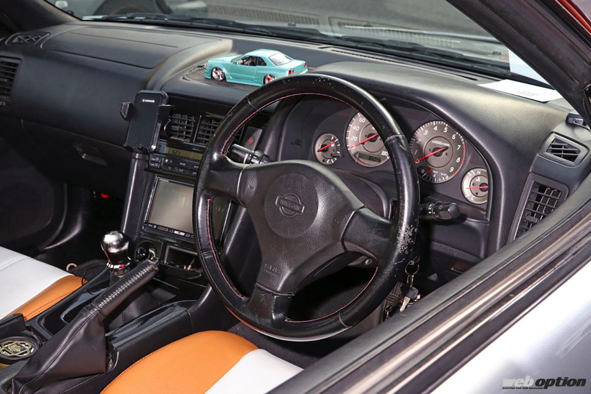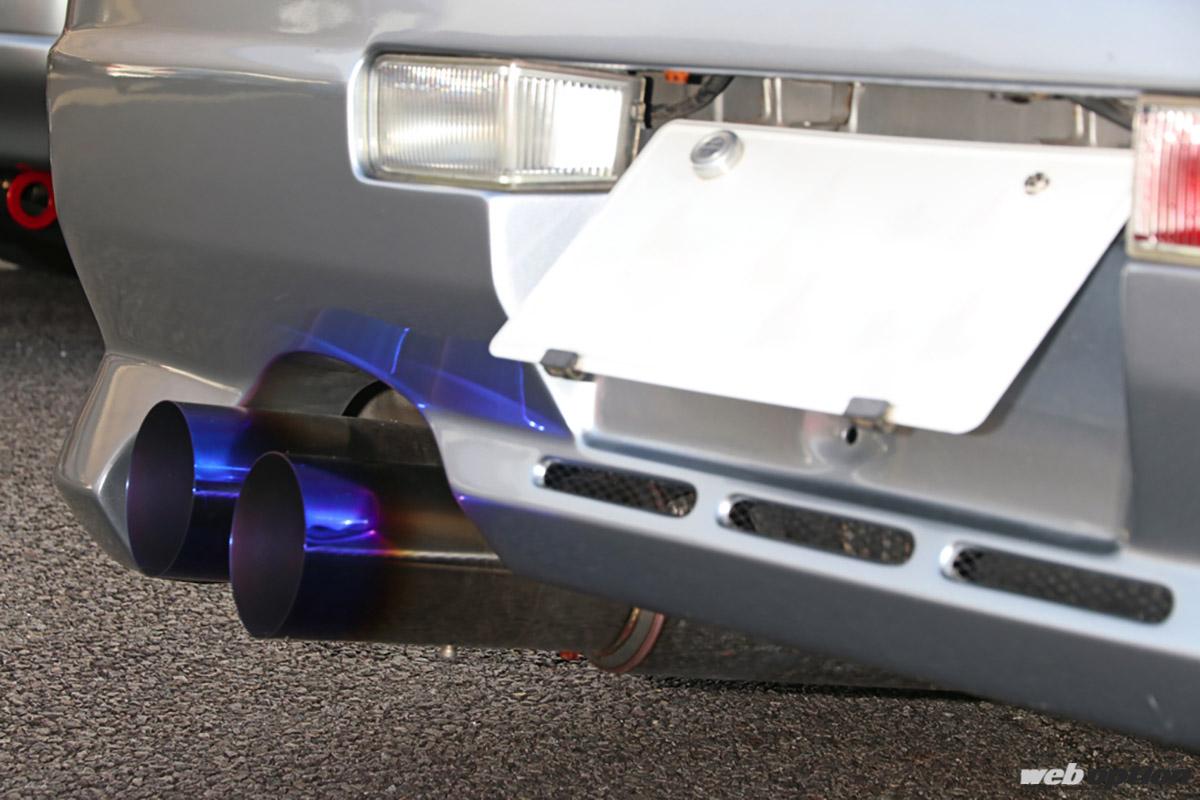 搭載されるエンジンは自然吸気のRB20DEで、変更点は2本出しのデザインで選んだラインハルトのマフラーのみとなっている。