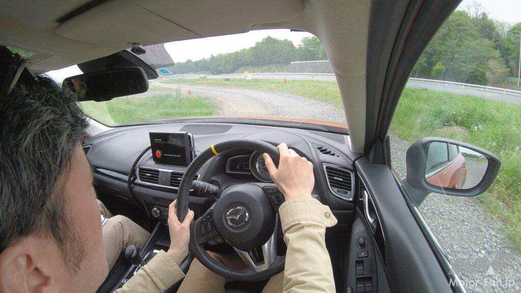 もともと「スキルフルなドライバーの運転を克明に分析することから始まった」GVCの開発だが、いかに優れたドライバーでも5ミリ秒毎に数Nm単位のアクセルコントロールはできない。5ミリ秒の制御周期に対応できる高応答のSKYACTIVエンジンあってのGVCだが、ECUの制御プログラムだけでこれだけ車両の運動に効果があることに驚いた。