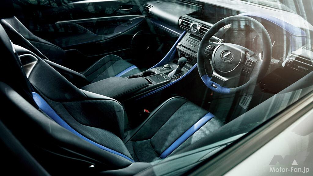 デザインはスポーティでダイナミックなサイドシルエットや、踏ん張り感を強調したホイールフレアなど、低く構えたワイドスタンスを生かした、躍動的なものとし、レクサスのデザインの象徴とも言える『スピンドルグリル』を採用。インテリアは水平基調のインストルメントパネルを採用し、運転席まわりを操作のしやすさに配慮したレイアウトとするなど、スポーティでエレガントなデザインを実現しています。またコクピットは表皮一体発泡工法により高いホールド性を実現するシートなどにより、スポーツ走行時でもドライバーの確実な運転操作を可能とする機能的なものとしています。