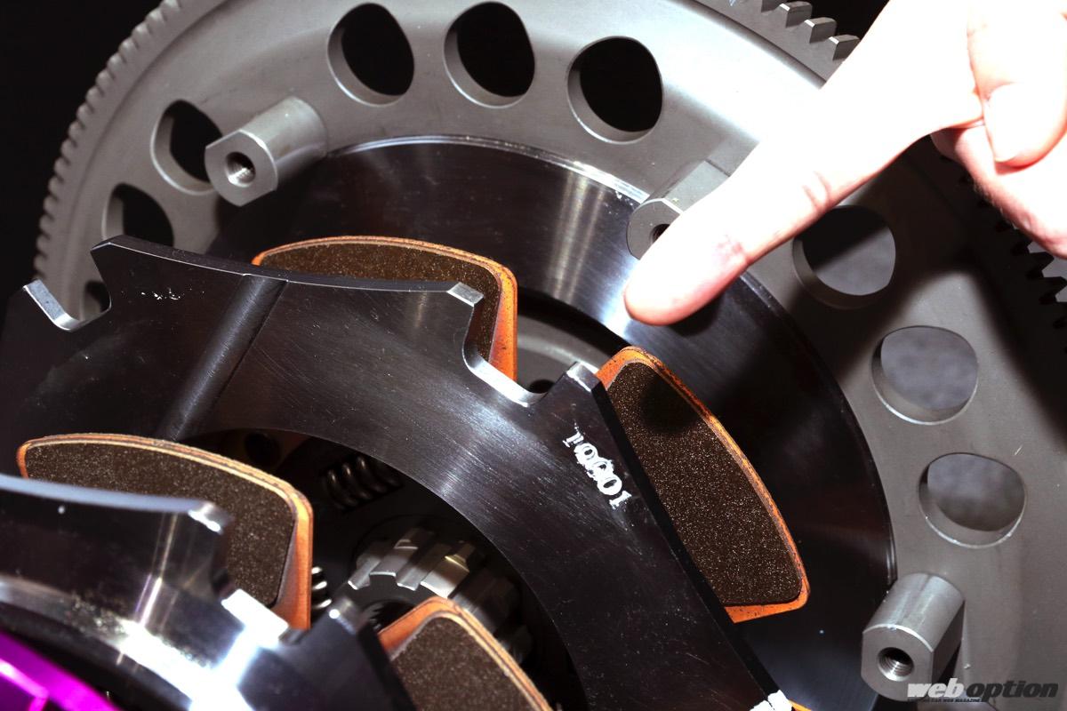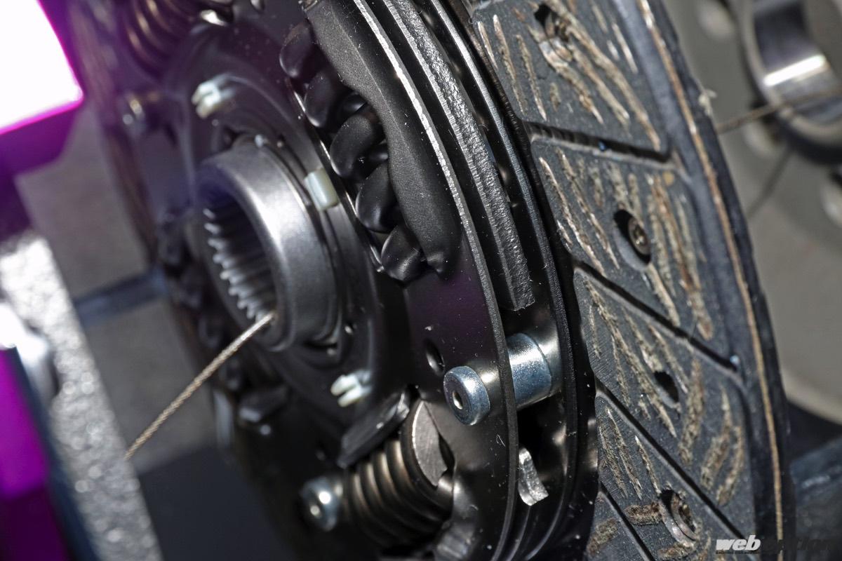 新旧86/BRZ用には、専用機構のサイレントダンパーも採用。これは純正にも使われている6速MT特有のアイドリング時の異音を解消するための機構で、アフターマーケット用のクラッチでは世界初とのこと。外からは確認できないが、センター部のプレート内に小さなスプリングが組み込まれている。