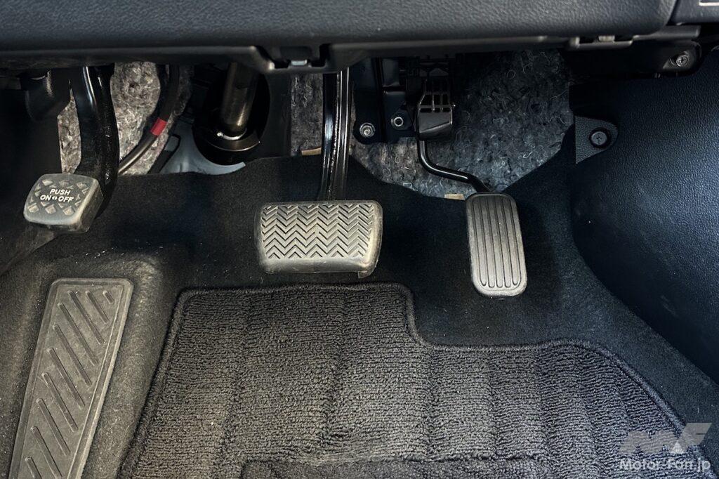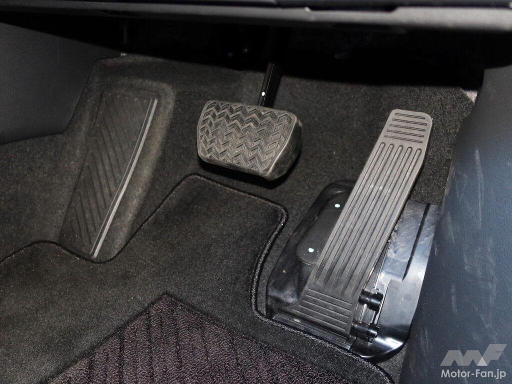 そこで、オルガン式アクセルペダルの出番である。一般的に、吊り下げ式ペダルは軽い踏力でストロークし、オルガン式のほうが重たい。そのため、オルガン式はストロークを短くしてもコントロール性を確保できる。ペダルを踏み込んだ際に剛性感が感じられるため、高級感につながるのもメリットだ。