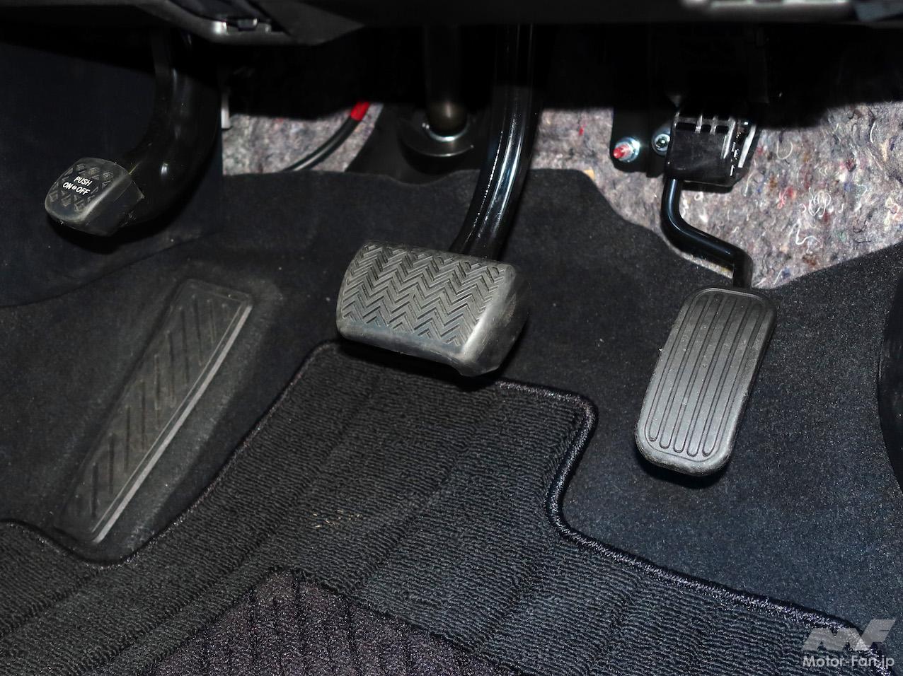 そこで、オルガン式アクセルペダルの出番である。一般的に、吊り下げ式ペダルは軽い踏力でストロークし、オルガン式のほうが重たい。そのため、オルガン式はストロークを短くしてもコントロール性を確保できる。ペダルを踏み込んだ際に剛性感が感じられるため、高級感につながるのもメリットだ。