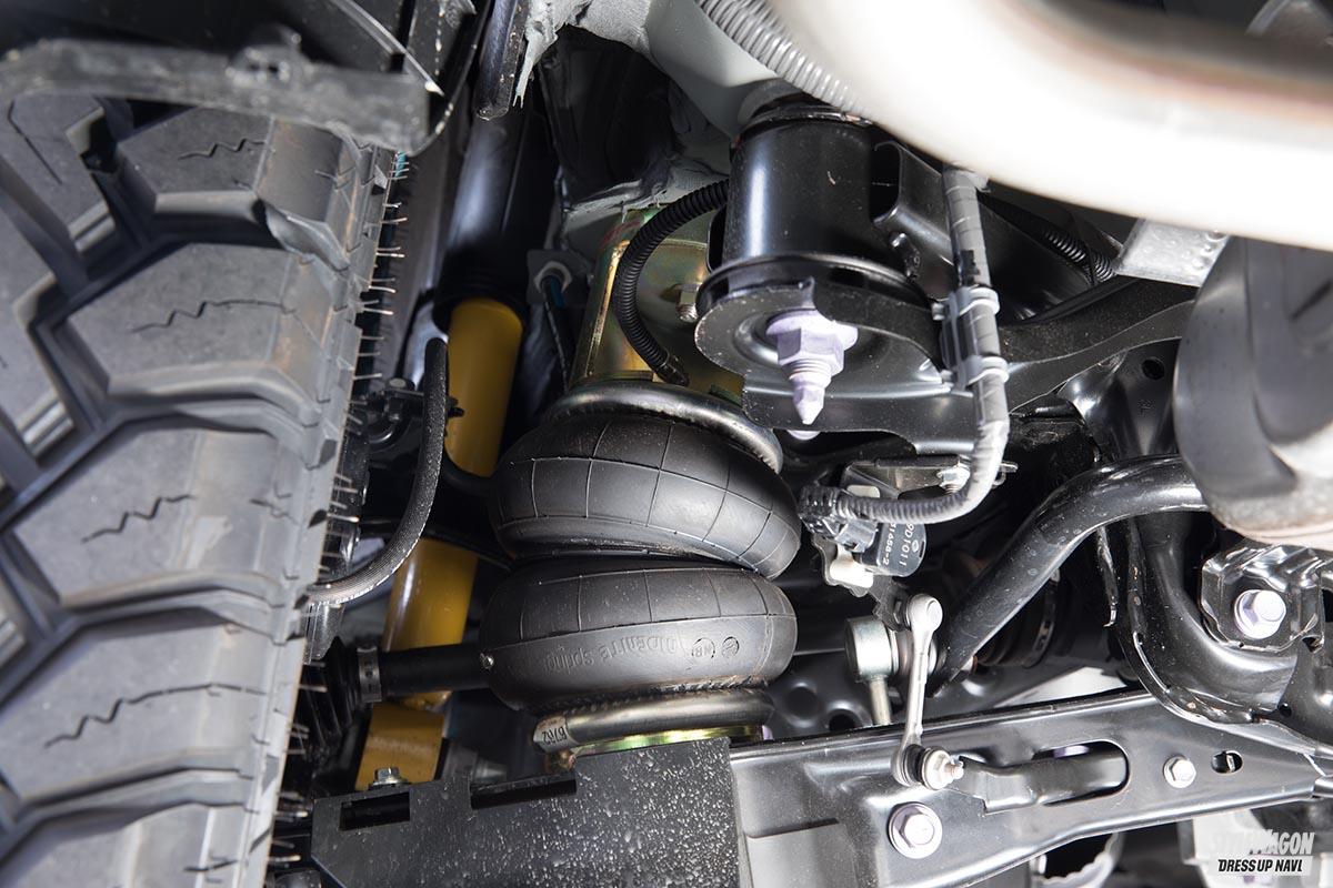 昨今のオフスタイルブームもあり、人気はリフトアップだが、純正でそれなりに車高が高いため、あえての純正キープという場合も。オススメは少しだけリフトする“ちょいアゲ”仕様。スプリング交換なら工賃込みで10万円前後で狙え、バランスを考えアゲ系車高調を使う手もある。コストは張るが、調整自由自在であるエアサスを狙ってもいい。さらに上級向けとして、専用器具を駆使してボディを強制的にあげる本格四駆車並のリフトアップも楽しむことも可能と、選択肢は複数ある。