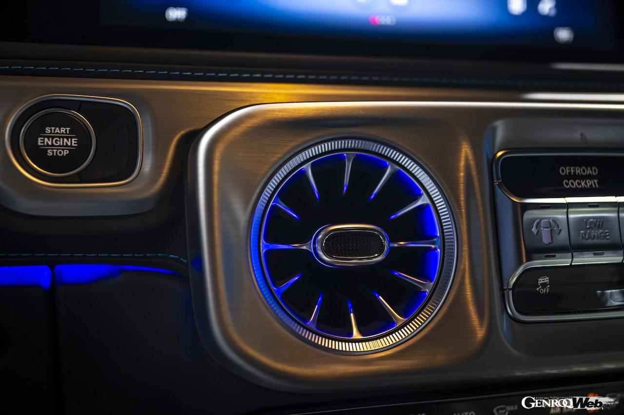 インテリアには、最新の「MBUX」インフォテインメントシステムを搭載。ナッパレザー製マルチファンクションステアリングホイール、アンビエントライトが標準装備される。オプションとして、キーレス・ゴー、温度調節機能付きカップホルダー、Burmester製3Dサラウンド・サウンドシステム、オフロード走行時にドライバーをサポートする「透過ボンネット」なども用意された。