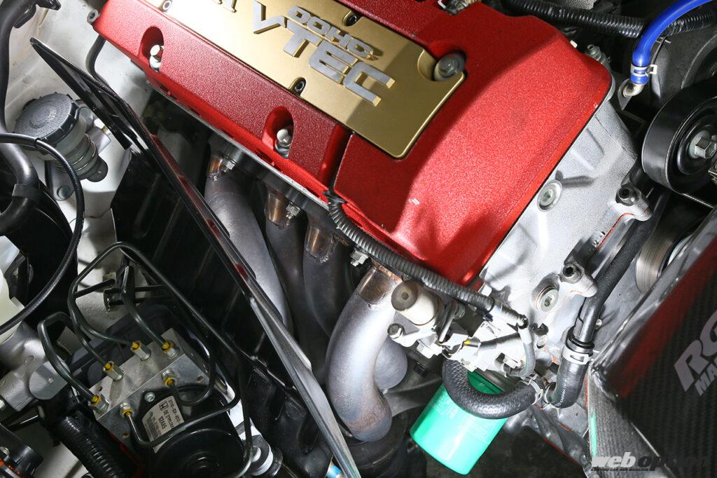 高回転まで引っ張って走るF20Aとは異なり、低中速トルク型のF22Cは走行距離が多少伸びていてもコンディションは比較的良好な個体が多い。そうした素性良さも踏まえて、RG-Oではエンジン本体には一切手を加えず、吸排気とECUの最適化のみでポテンシャルアップを図っている。