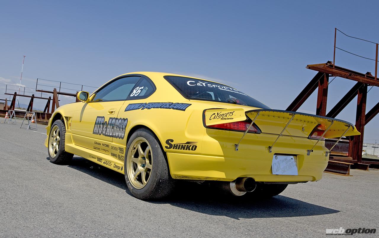 今回ピックアップするのは、そんな同社がかつてデモカーとして製作したS15シルビア。NA・AT・不人気色という格安ベース車に、ゼロヨンイベントでクラッシュしてしまった旧デモカー(AE85に2JZを換装したドラッグスペシャル)のパワートレインを移植した魔改造チューンドだ。