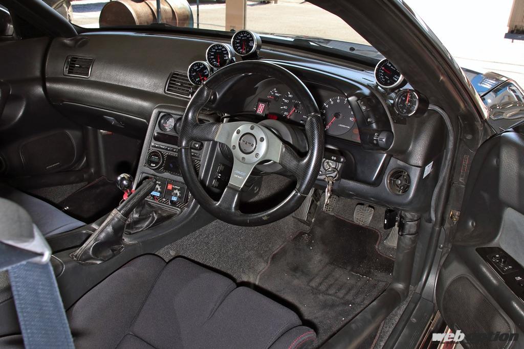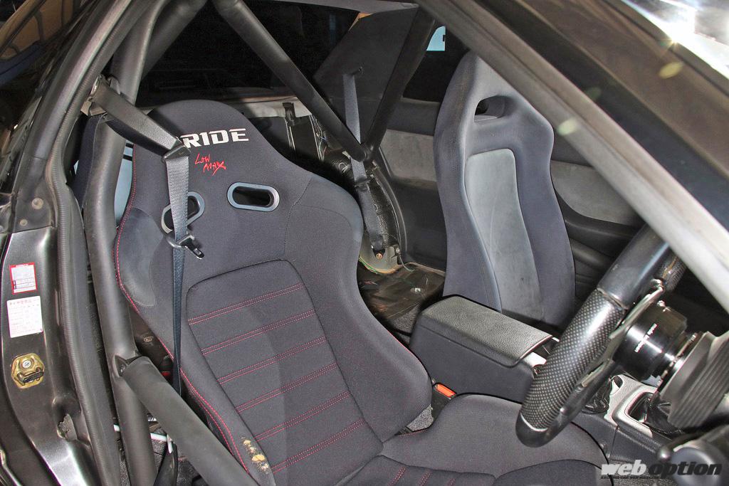 通勤や買い物にも使うストリート仕様を感じさせるインテリア。サイドバー付きのロールケージまで装備した現状でも車重はほぼノーマルとなっている。今後はカーボンドア化などでさらなる軽量化を検討中という。