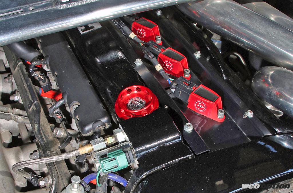 ヘッドはティー・ゲットによるポート修正加工の他、HKSのVカムシステム(IN側)&264度カム(EX側)というスペック。イグニッションプロジェクツの点火コイルも、効果を体感できるお勧めパーツとのこと。