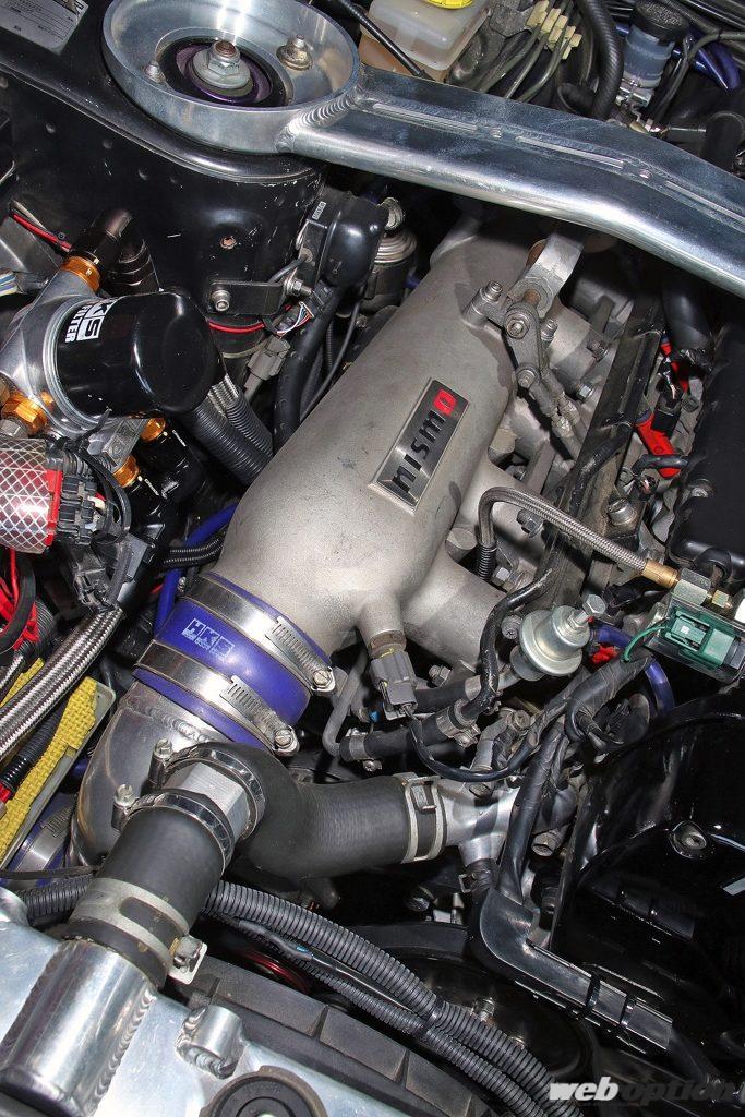 サージタンクにはニスモ製を奢り、霧化特性に優れたマルチポイントタイプのインジェクターを装着。エンジン制御は軽量化も考慮して、純正ECUを残さずF-CON Vプロ3.4のみの単独駆動としているのもポイントだ。