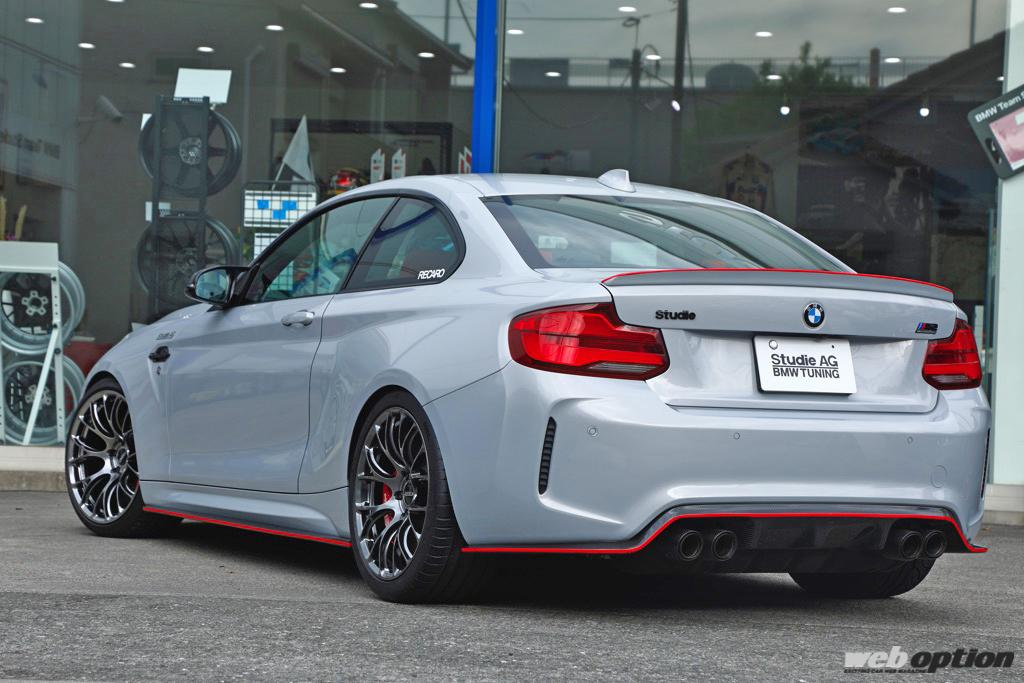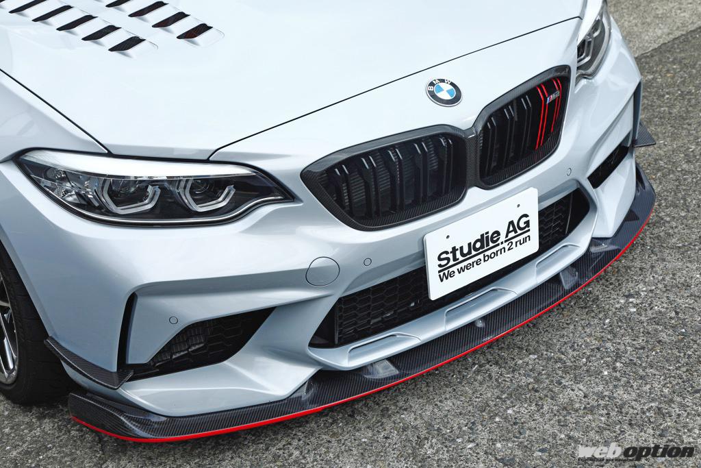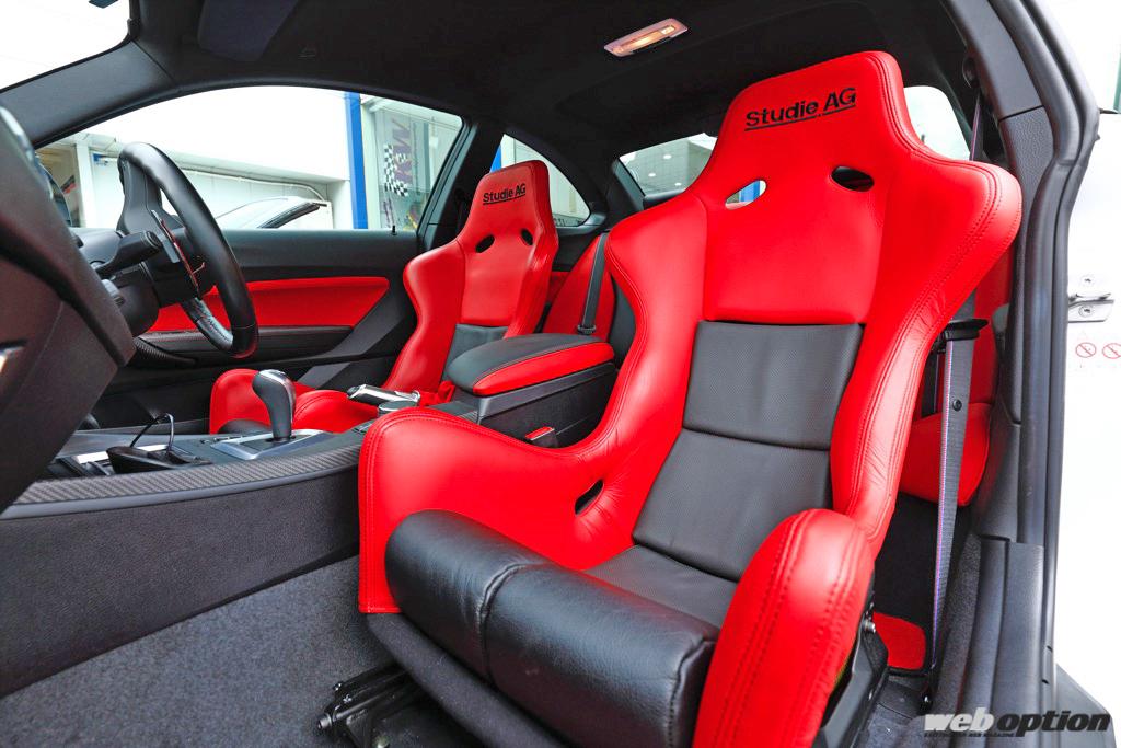 そんな生まれながらのアスリートを全域でパフォーマンスアップさせたのが、BMWカスタムのトップランナーである“スタディ”だ。テーマカラーをレッド×ブラック(カーボン)と決め、エクステリアからインテリアまでトータルカスタマイズが施されている。