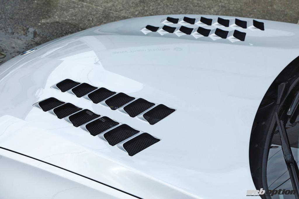 エクステリアは、エキゾーストのカーボンテールまで含めて3Dデザイン製で統一。グリルとミラーカバーはMパフォーマンス、ルーバータイプのボンネットは純正加工で製作した。