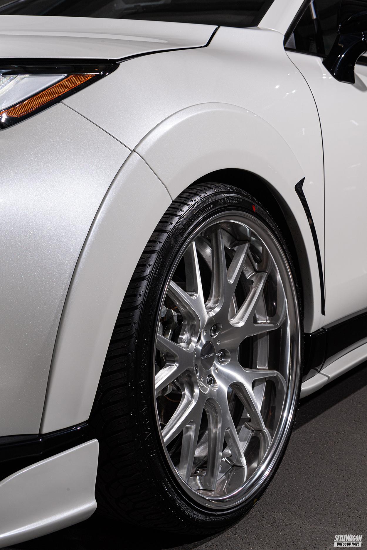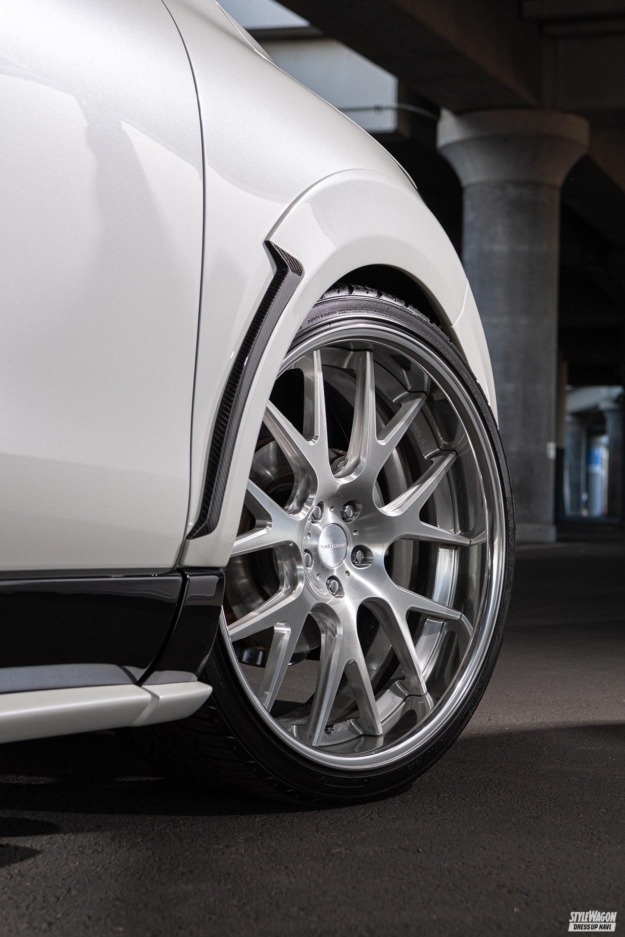 アーティシャンスピリッツは、大衆車はもちろん、レクサスや輸入車など、世界各国の話題車用エアロを発表している業界屈指のコンストラクターだ。ユーザーが同社に抱くのは、派手さではなく、洗練や華麗といった優美なイメージ。純正形状を否定しすぎずその延長線上に位置するかのような、自然な躍動感を追求したエアロは世界で広く支持されている。見た目の美しさと、走りやすいという機能性の両立を図った意匠は大きな魅力であり、今特集のテーマである、ホイール映えさせる一手としても役目は十分と、主張しすぎることのない謙虚さも手にする醍醐味といえそう。
