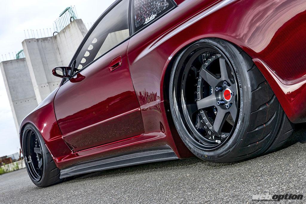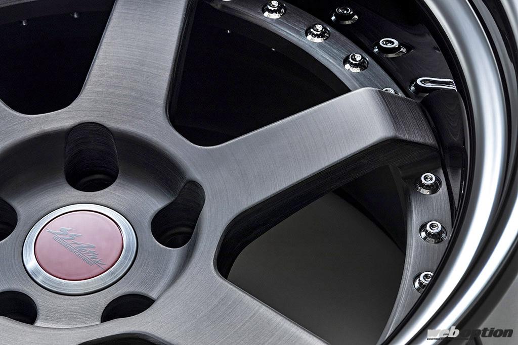 現在のトレンドである“コンケイブ”と、改造車文化における伝統とも言うべき“深リム”を融合させ、新機軸の6本スポークを採用。ピアスボルトも取り入れるなど、斬新でありながらも落ち着いた雰囲気に仕上げられている。