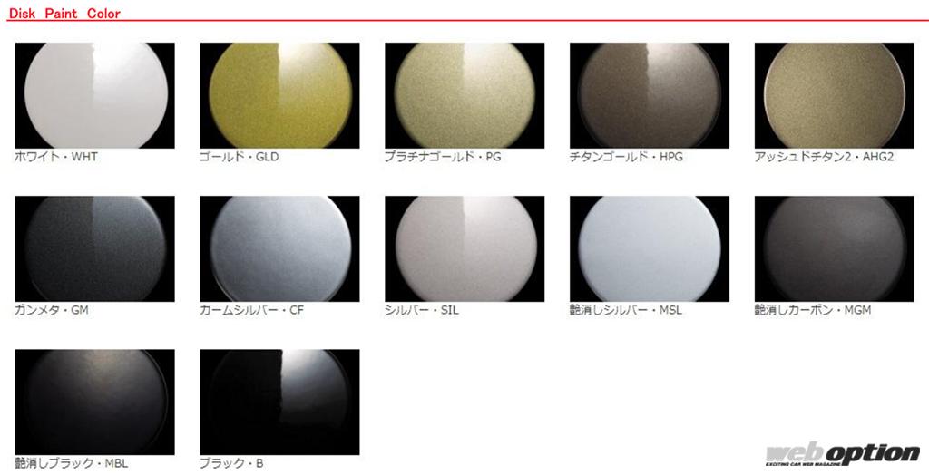 豊富なオプションカラーとオプションリムを設定している点も注目だ。具体的なディスクカラーやリムの仕上げは表の通りで、ディスクカラー12種類、リム6種類から選択可能。また、ディスクに関しては切削仕上げを選択することもできる。