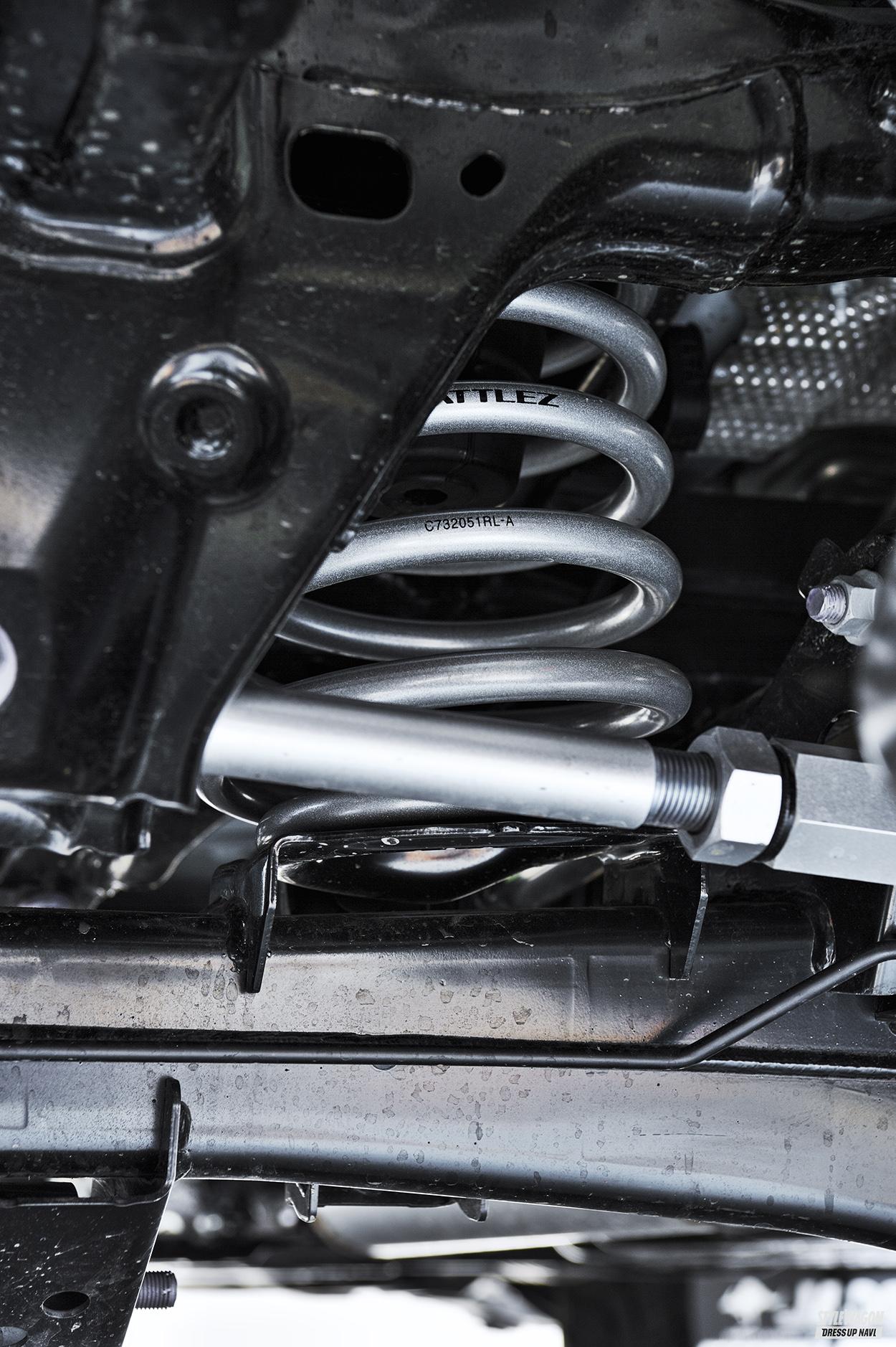 スキッドプレート風のデザインを落とし込んだフロントバンパーガードをはじめ、リヤスパッツやフェンダーといったボディキットは、ランクルならではの高級感を損なうことなく、オフロードテイストをプラスしてくれる。スタイリング面はもちろんだが、ハイクオリティな品質も魅力のひとつ。デモカーを見てもわかるとおり、まるで純正グレードに存在するかのような、ナチュラルな仕上がりは必見だ。