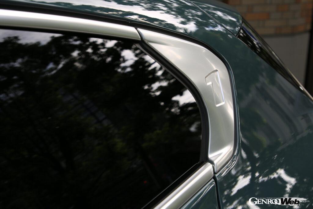 Cピラーのホフマイスターキンクには、数字の「1」をあしらったグラフィックエレメントを採用。リヤセクションでは、バーティカルリフレクターとブラックのディフューザーが力強い印象を与えるという。