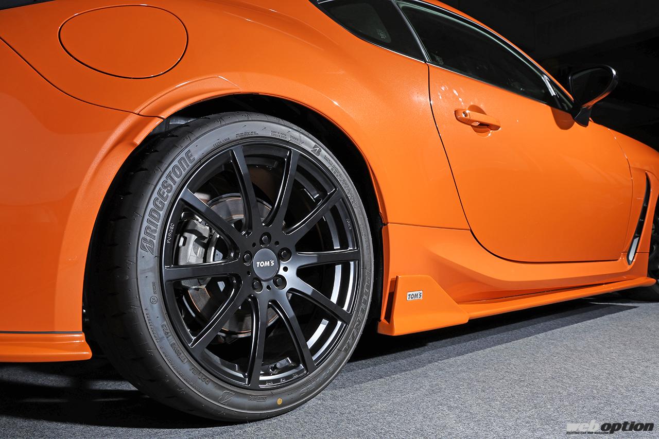 さらに注目したいのは、新開発のオーバーフェンダーキットを纏ってデビューしたコンプリートモデルであるトムスTSS。オーバーフェンダーは大きく張り出しているように見えるが、片側8mmと構造変更の必要もないレベルなのがポイントだ。