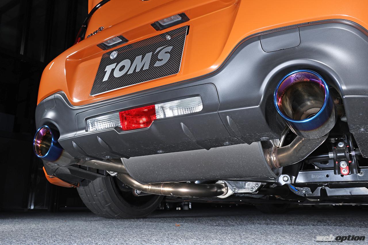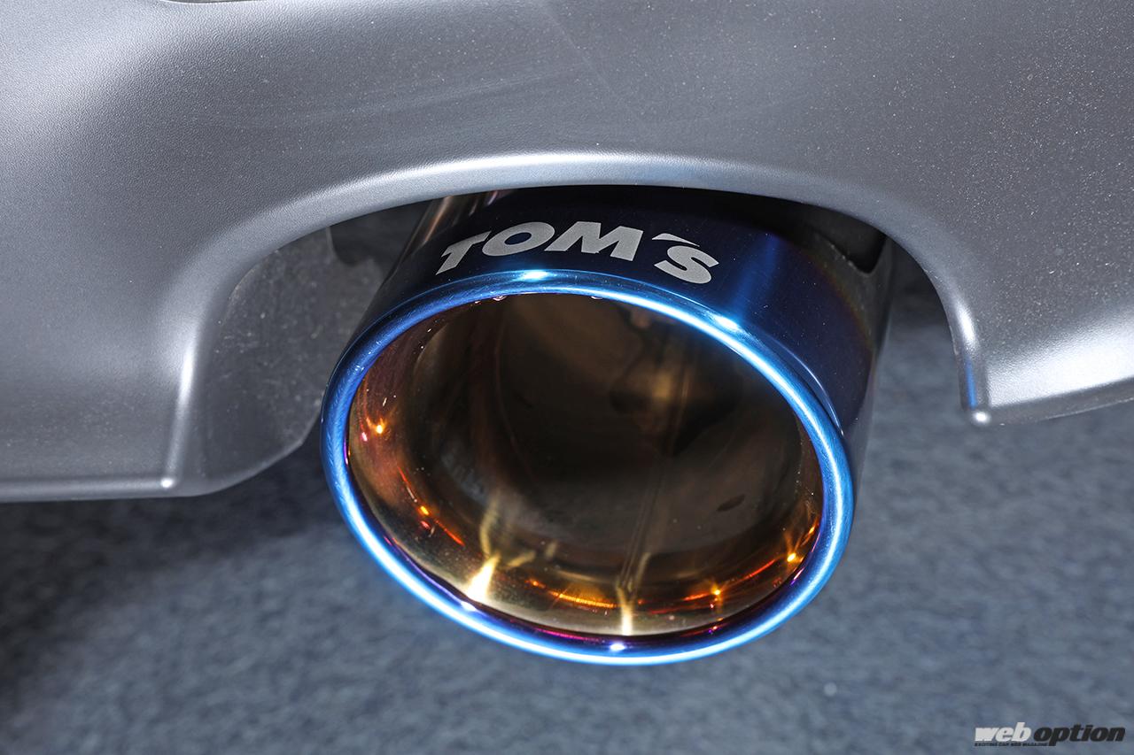 先日、ラインナップに加わった純正バンパー対応のトムスバレル(29万7000円)は、オールステンレス製としてエントリーユーザーが取り入れやすい製品を追求。なお、テールエンドはチタンカラーとTOM’sロゴのコンビネーションで高級感を演出している。