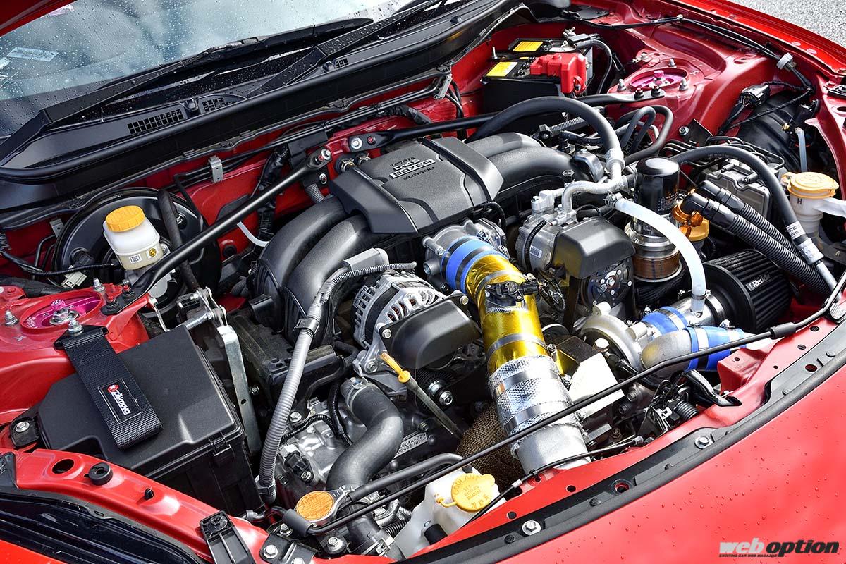 「より新しいモデルでドリフトしたかった」という理由で選んだGR86だったが、納車後にサーキットを走ってみるとパワーの少なさを実感。そこで発売から間もないトラストのボルトオンターボキットをイベント直前にインストール。エンジン本体はノーマルだが、冷却系強化のためにトラストのエンジンオイルクーラーも追加。ワンオフマフラーの製作も含め、チューニングは神奈川県の“ジュリアス”が担当しているそうだ。