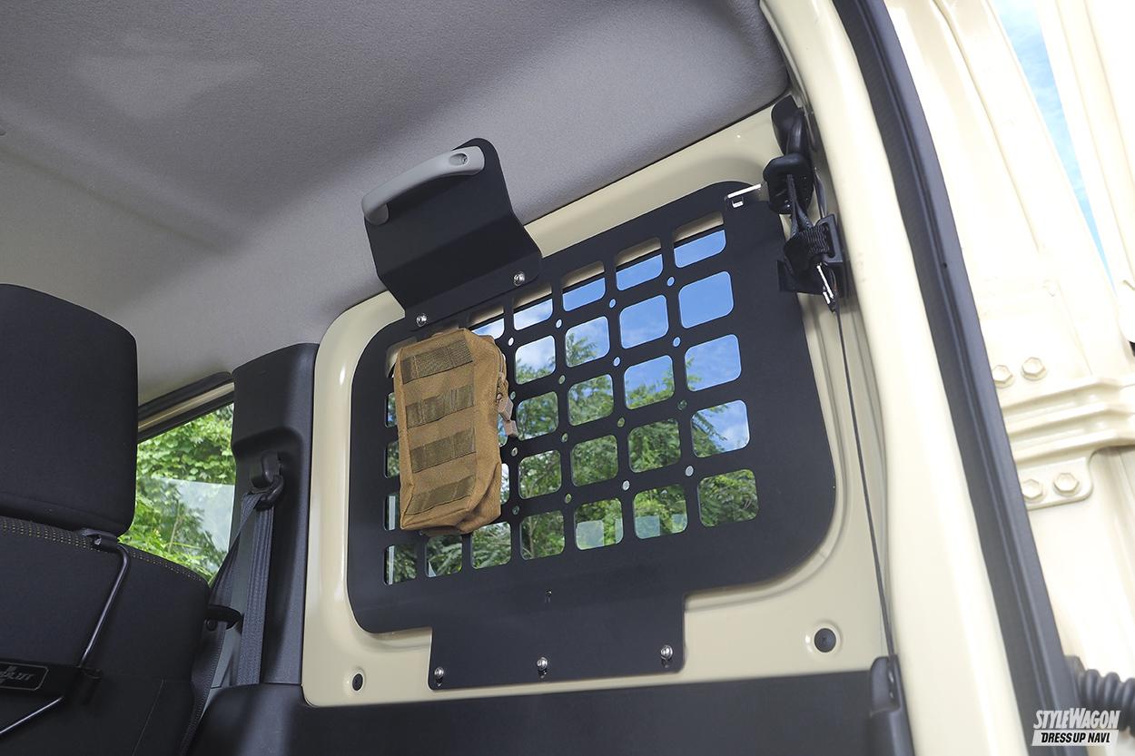 さらに、今回NEOPLOTブランドではなく、PLOTの輸入商材で新たな商品がラインアップ。ダッシュボードマットとストレージモールシステム、トランクマットとリアウインドーゲージが販売開始。ダッシュボードマットはルックスだけでなく、ダッシュボードを保護できる。ストレージモールシステムはバックドアの内側にビス留めし、様々なアイテムを引っ掛けて固定できるモールシステム。トランクマットはラバー製の立体マット。アウトドアで汚れ物などを積んでもトレーごと外に出せる。リアウインドウゲージはクオーターガラス内側にセットし、キャンプ道具などの荷崩れからガラスを守るだけでなく、様々なアイテムを引っ掛ける事ができるスグレモノ。装飾や利便性を高めるアイテムだ。これらのパーツが新たにPLOTから販売される。