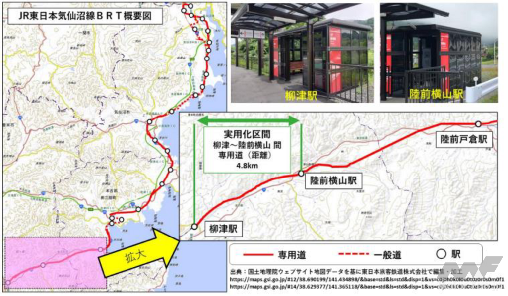 自動運転実用化区間(気仙沼線BRT 柳津駅~陸前横山駅間 専用道)