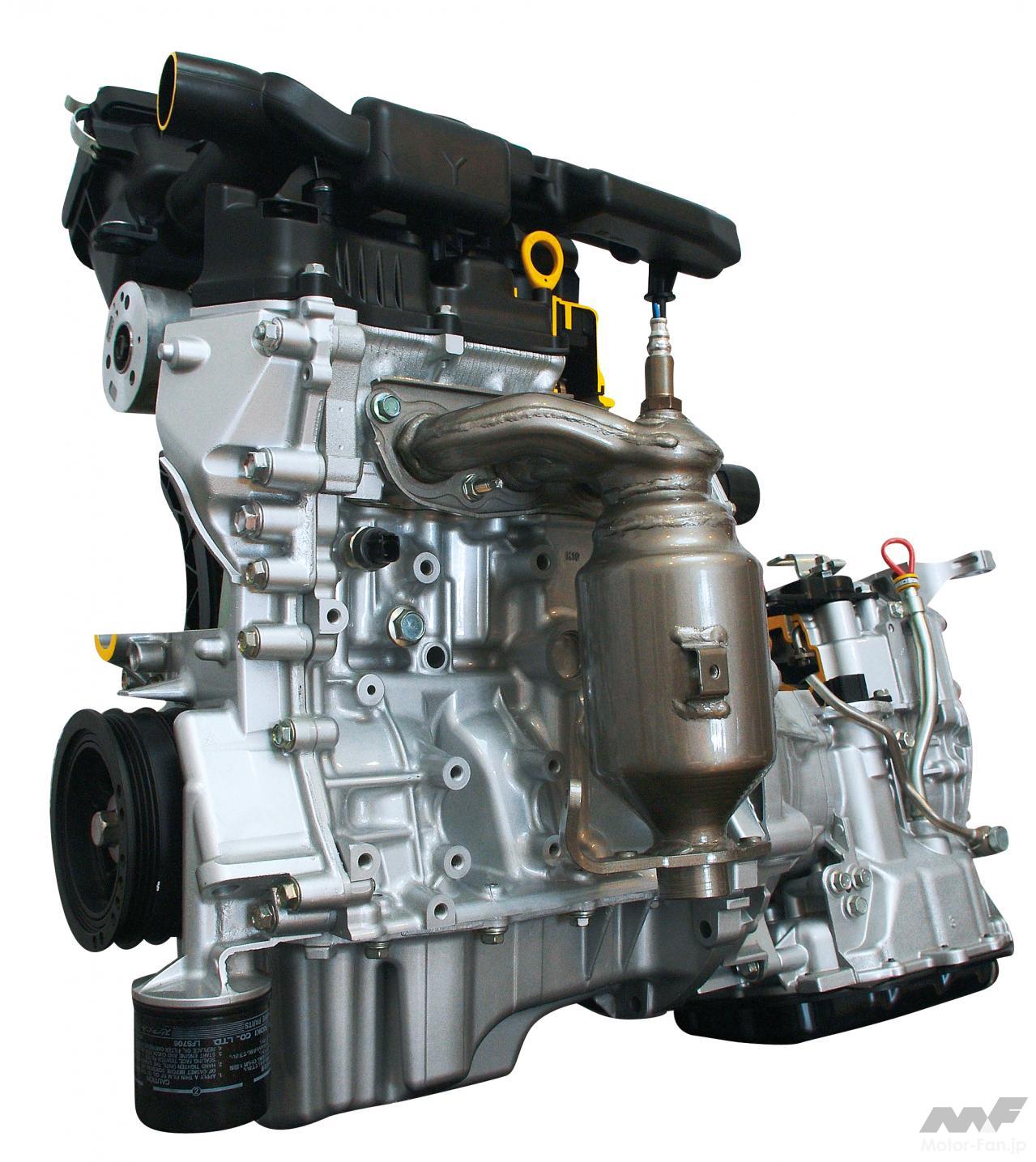 吸気側に備わる可変バルブタイミング機構・DVVTは、EGR作動時には25度程度、非作動時には50度程度で作動する。排気側にも備わればさらに燃費の取り代は増えるがそこはコストの問題が浮上した。フューエルインジェクターはPFI方式で、ノズルを従来品から長くして噴射位置を燃焼室に近付け、ポート内の燃料付着を低減させた。燃料噴射圧は294bar、噴孔数は8。