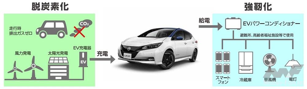 一方、日産自動車は、EVならではの新たな価値やワクワクを提供し続けるとともに、2018年5月より、EVの普及を通じて、脱炭素、災害対策、エネルギーマネジメント、観光、地方での交通課題などの地域課題解決を目指す、日本電動化アクション『ブルー・スイッチ』を、全国の自治体や企業、販売会社と共に推進している。また、2030年代早期には、主要市場で投入する新型車すべてを電動車両にすることを宣言、電動化をリードしながら、SDGsの達成やカーボンニュートラルの実現に向けた取り組みを加速している。