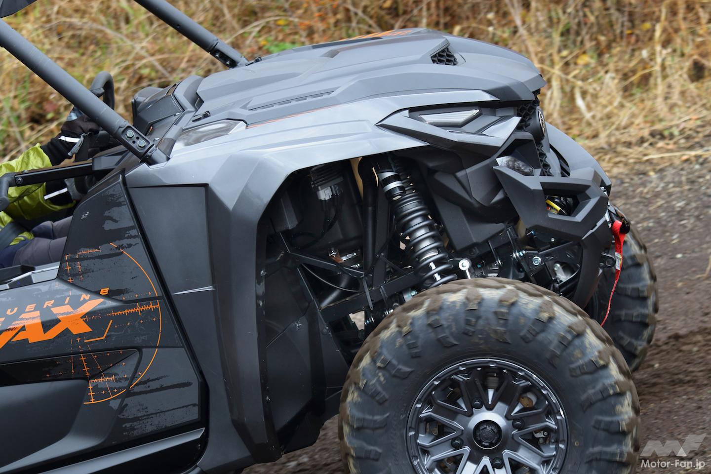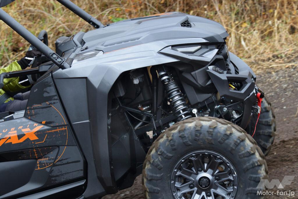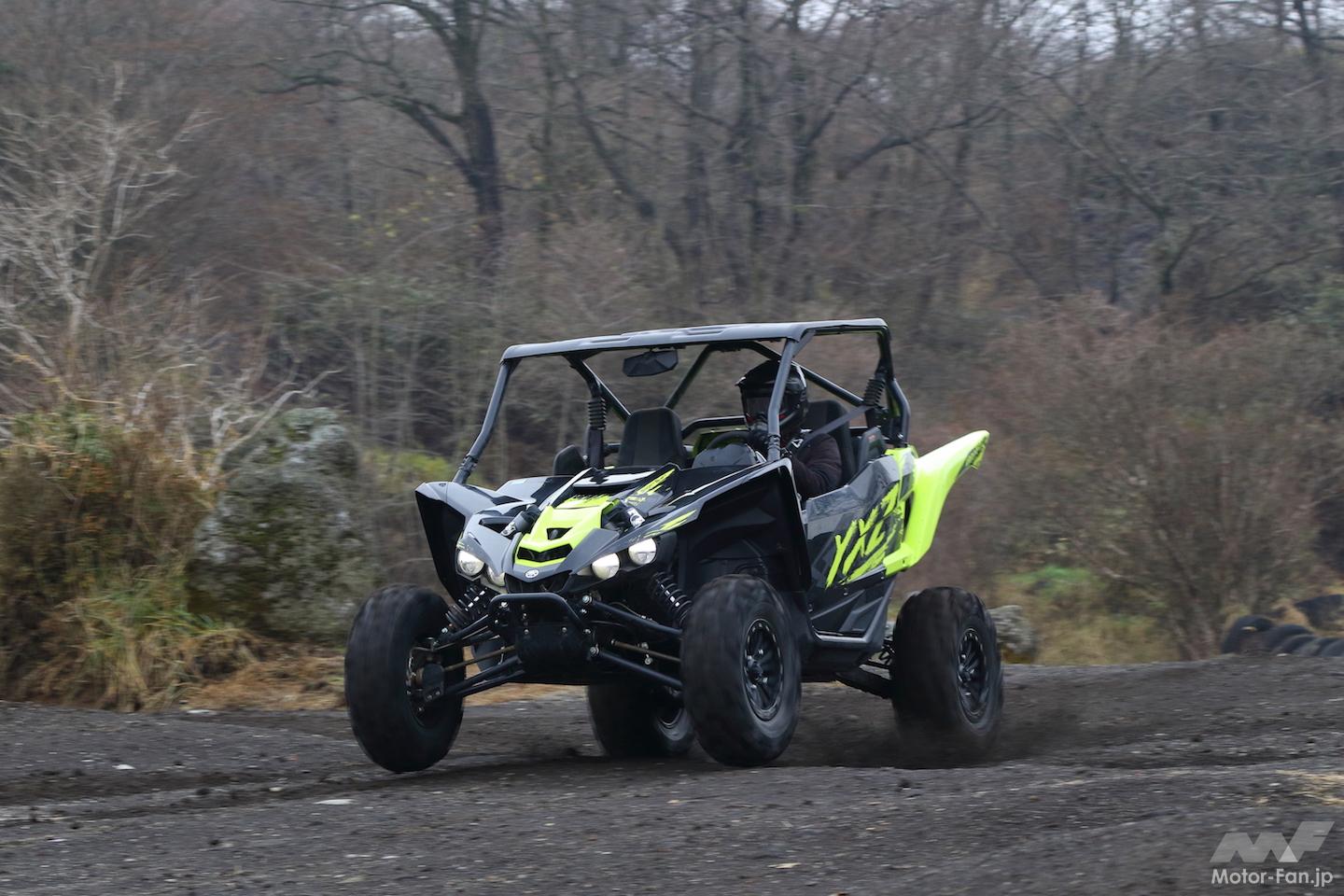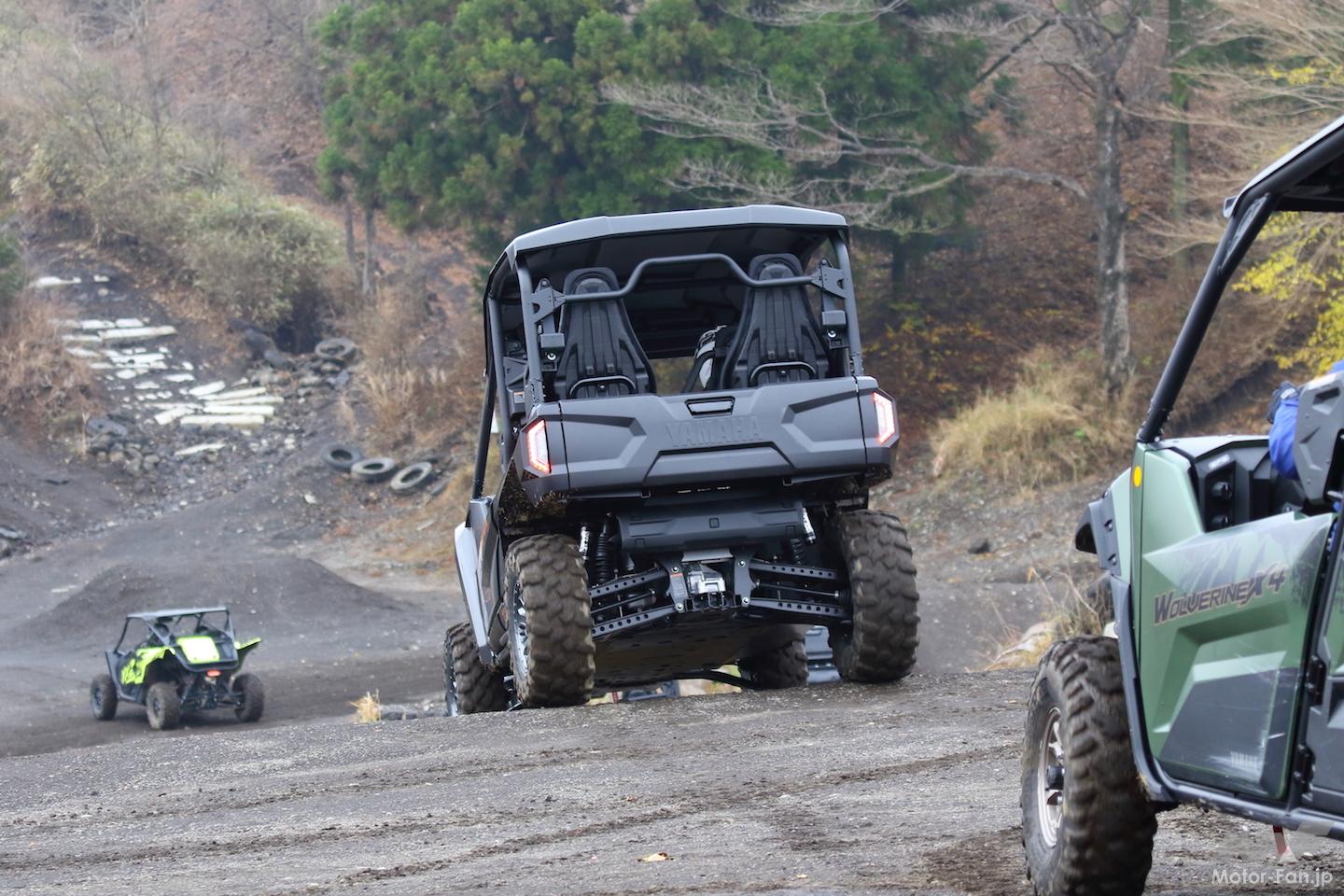 特に感心したのが、YXZの乗り心地の良さ。60〜70km/hでギャップを越える際、サスペンションの底付きに備えて身構えたら、猫が着地するかの如く、しなやかにやり過ごした。ダンパーにはボトムアウトコントロールカップ(油圧式バンプストッパー)が内蔵されており、フルボトム付近のエネルギー吸収をうまくやっているからだそうだ。