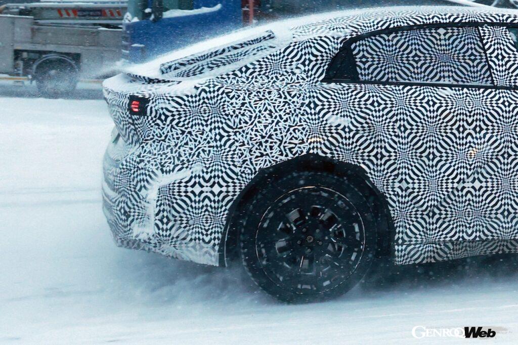 最も顕著な違いは、全高の高さだろう。コンセプトモデルはリヤのホイールアーチをクォーターパネルに深く切り込ませていた。一方、今回目撃したプロトタイプでは、アーチの上部からCピラーのつけ根までの間が長くなっている。