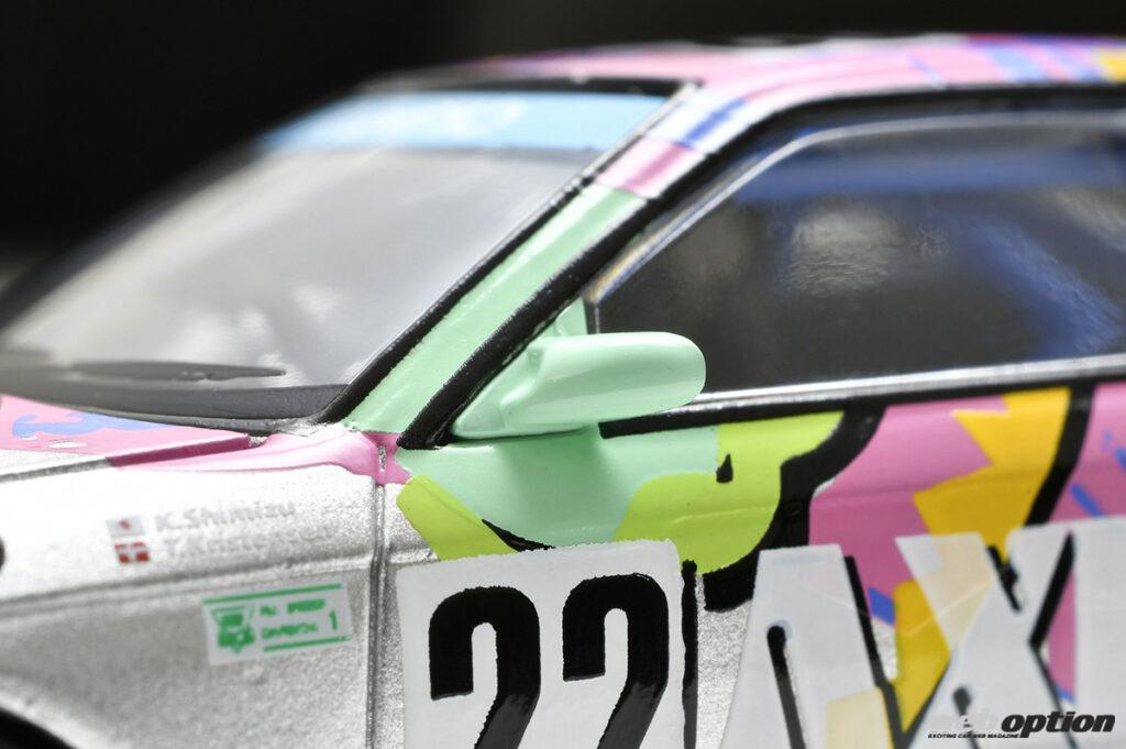 通常のトミカ同様の1/64スケールでありながら、デカール類やミラー、ホイール、サイド出しマフラー、エアジャッキといったグループAモデルの特徴を忠実に再現。その精巧さは、一般的なミニカーとは比較にならないほどハイレベルなものだ。