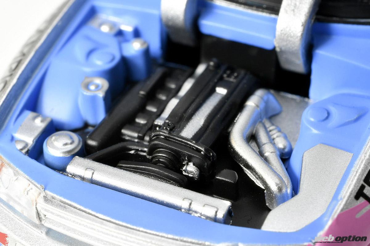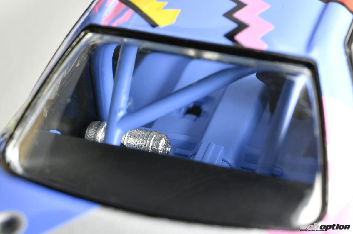 さらには、コクピットやエンジンルームといった細かい点に至るまで、実車さながらのクオリティでフィニッシュ。インテークもRB26DETTグループA仕様のレイアウトになっている拘りぶりである。