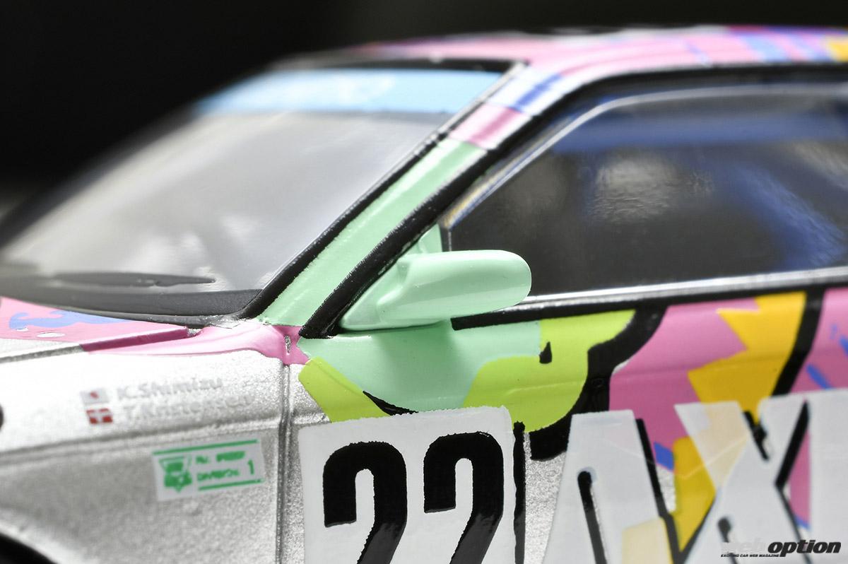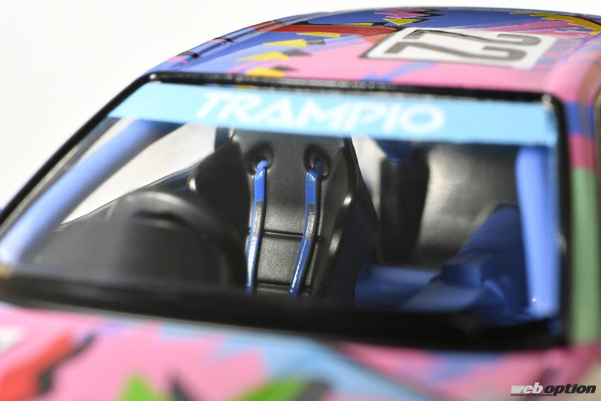 通常のトミカ同様の1/64スケールでありながら、デカール類やミラー、ホイール、サイド出しマフラー、エアジャッキといったグループAモデルの特徴を忠実に再現。その精巧さは、一般的なミニカーとは比較にならないほどハイレベルなものだ。