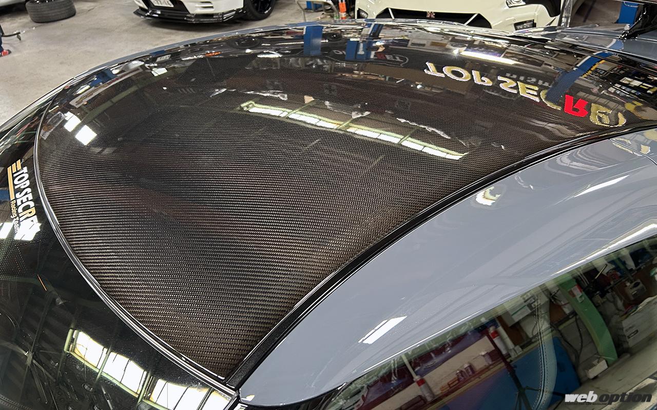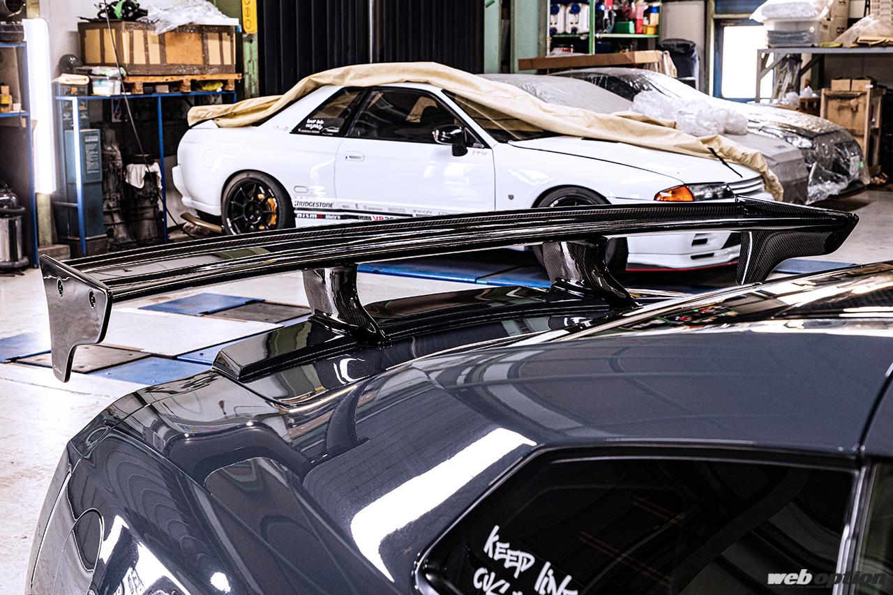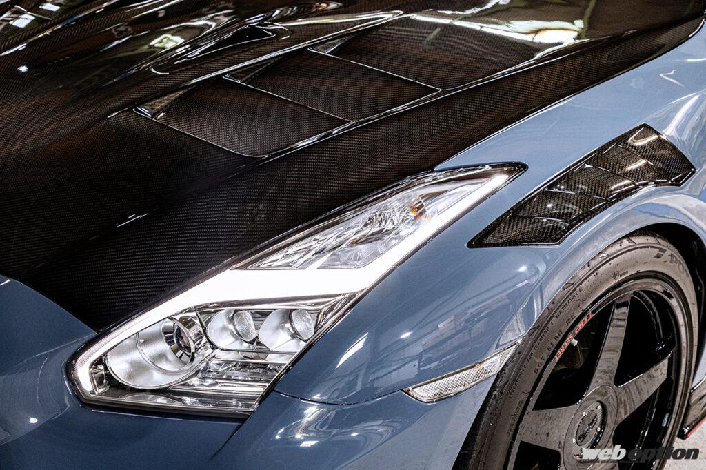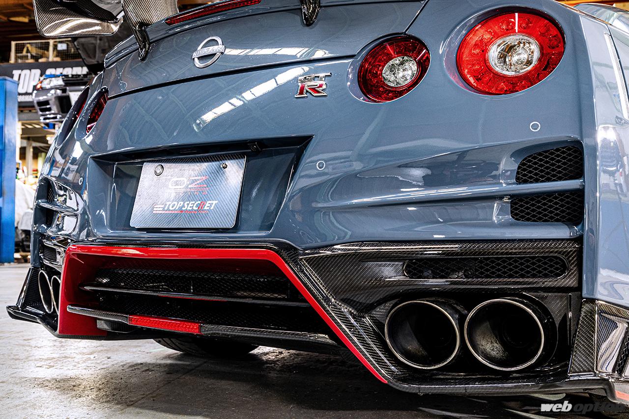 エクステリアの構成パーツは先に紹介した2012年モデルと同一だが、ボンネットのみならず、リヤアンダースポイラーもドライカーボン製とするなど、NISMO仕様をリスペクトしたアプローチが随所に施されている。