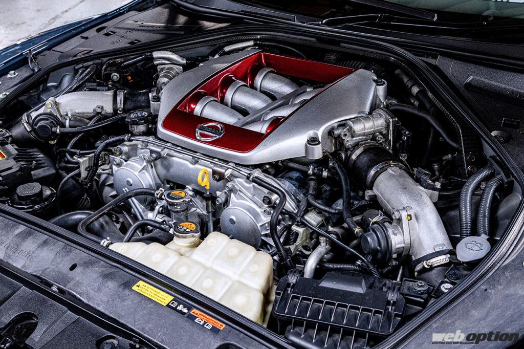 走行距離7万2000kmのVR38DETTは、独自のプロクセスECU(ステップ2)でブーストアップを敢行。レスポンスの良い580psで仕上げられた。GR6ミッションは、メンテナンス&ECU制御の変更(2021年モデルへVer.UP)が行われている。