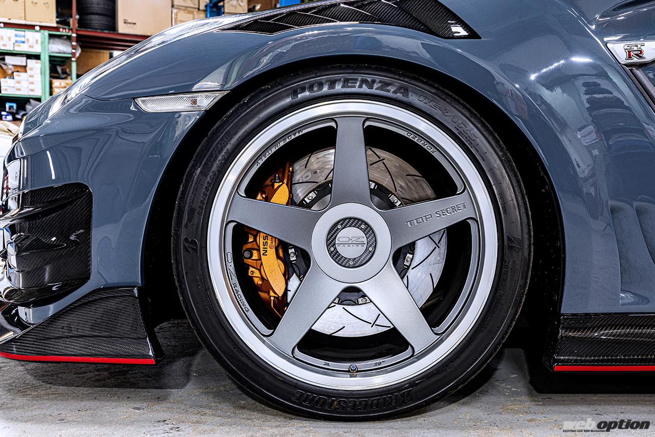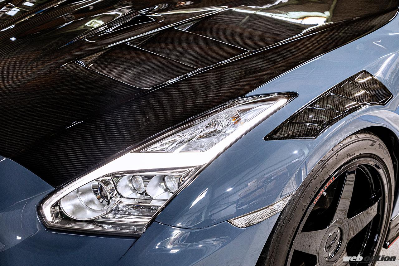 エクステリアの構成パーツは先に紹介した2012年モデルと同一だが、ボンネットのみならず、リヤアンダースポイラーもドライカーボン製とするなど、NISMO仕様をリスペクトしたアプローチが随所に施されている。