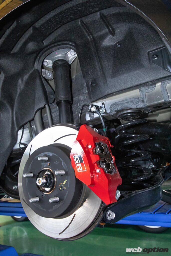 また、HKSではフロントのサスメンバーやロアアームはGRカローラと同様になると予想していたが、意外なことに従来型とイコール。一方のリヤサスも、ショックアブソーバーまで含めてハード面の変更は確認できなかった。